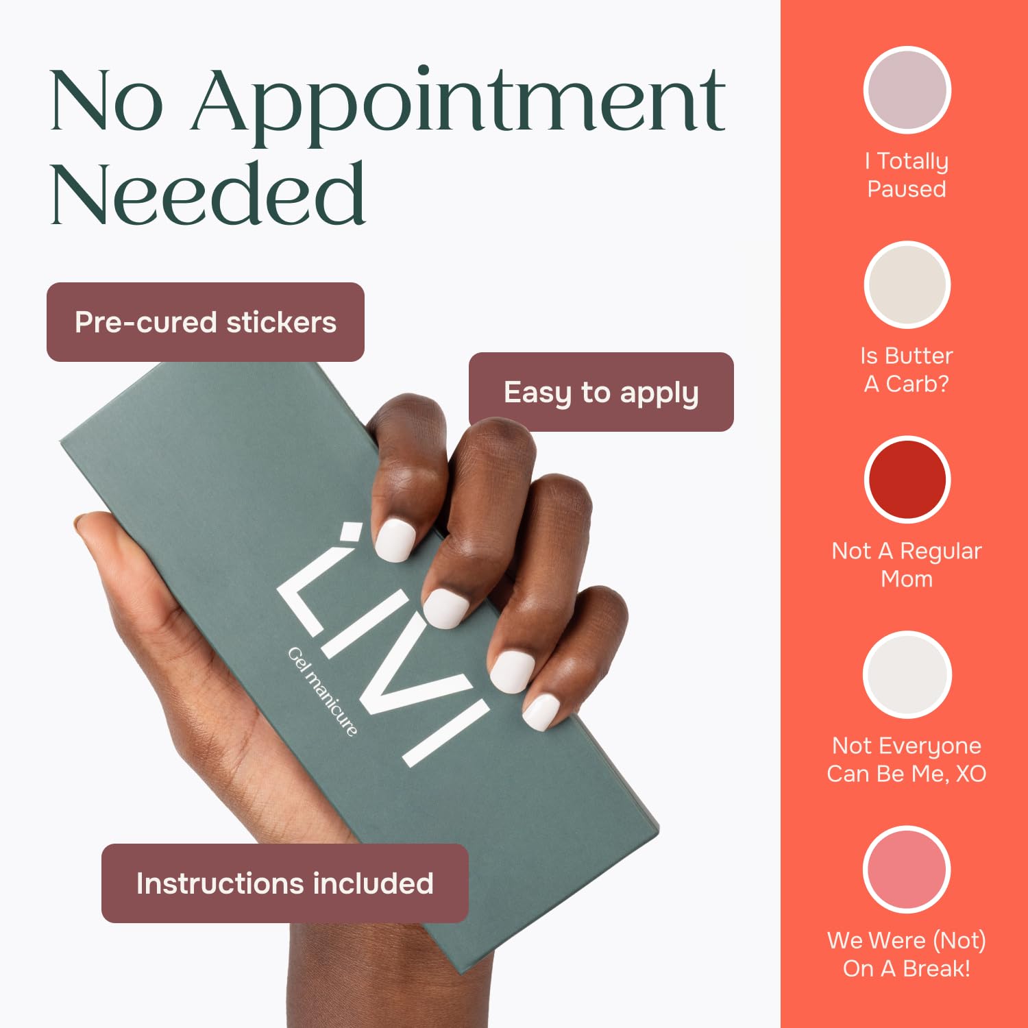 Livi Gel Manicure System with UV Light – Full Mani Kit with 40 Nail Stickers, UV Light, & Mani Tools for Salon-Quality Nails at Home – Easy-to-Use DIY Starter Gel Polish Set (We Were Not On a Break)
