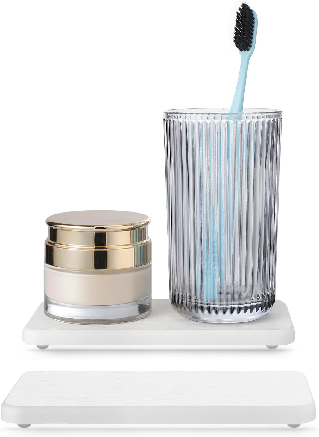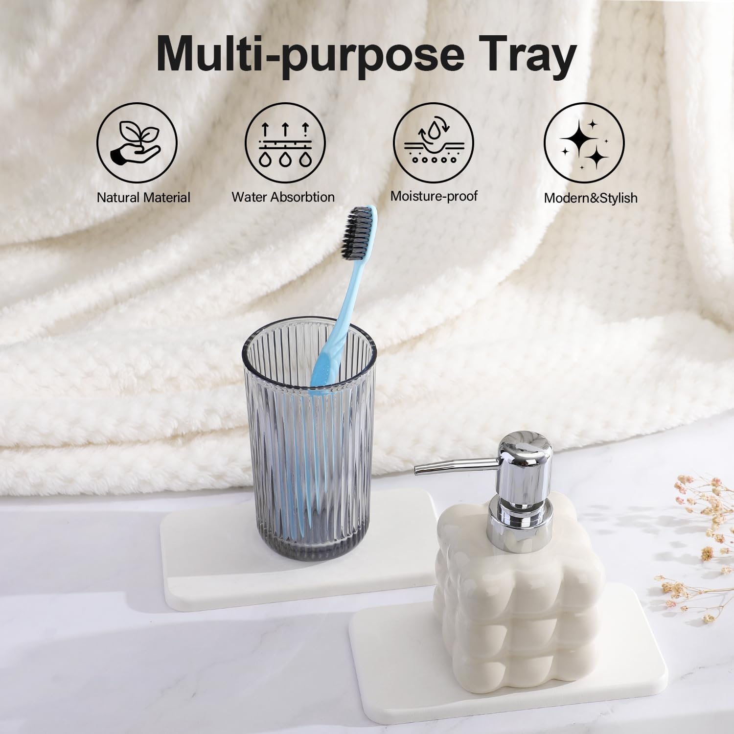 Water Absorbing Stone Tray for Sink | Quick Drying Diatomaceous Earth Coasters | Soap Dish Holder & Toothbrush Holder for Bathroom Counter | Hand Soap & Plant & Toiletries | White 2 Pack