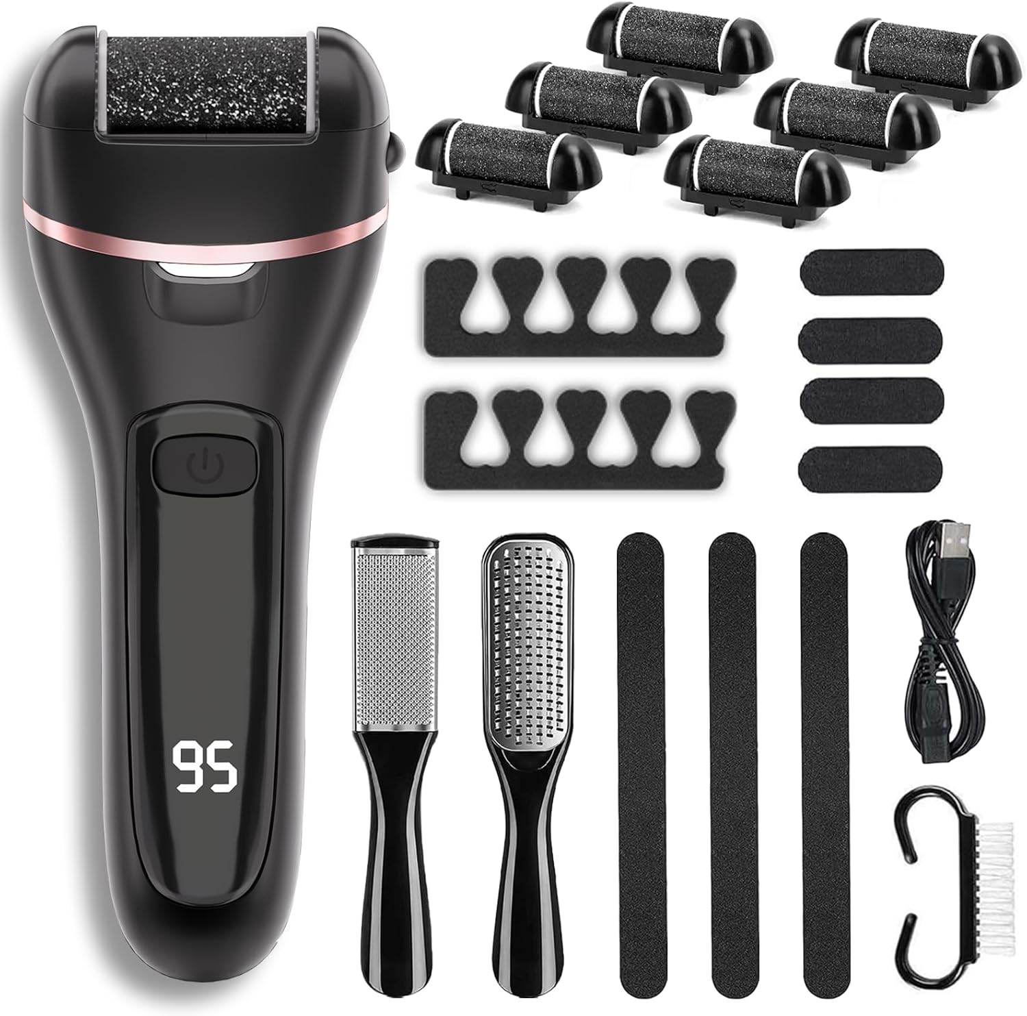 Rechargeable Electric Callus Remover for Feet with 6 Roller Heads, Dual-Speed Foot File, Waterproof Pedicure Kit 20 in 1 for Smooth Skin and Foot Spa