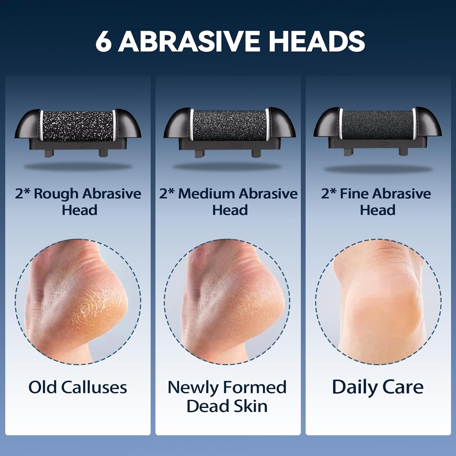 - Versatile Performance – With two power settings and six interchangeable grinding heads, you can easily customize the experience to meet your specific needs, ensuring soft, smooth feet with minimal effort.