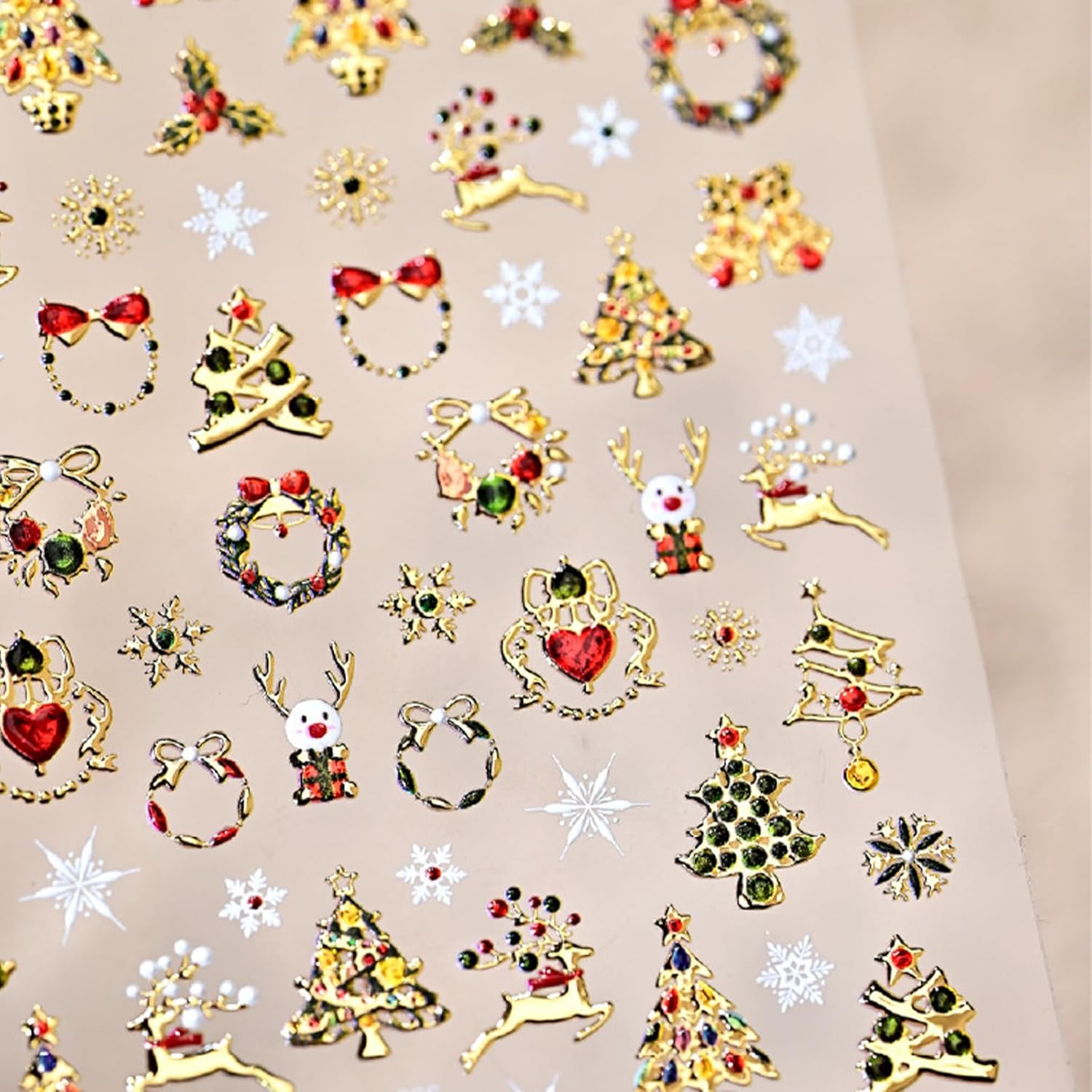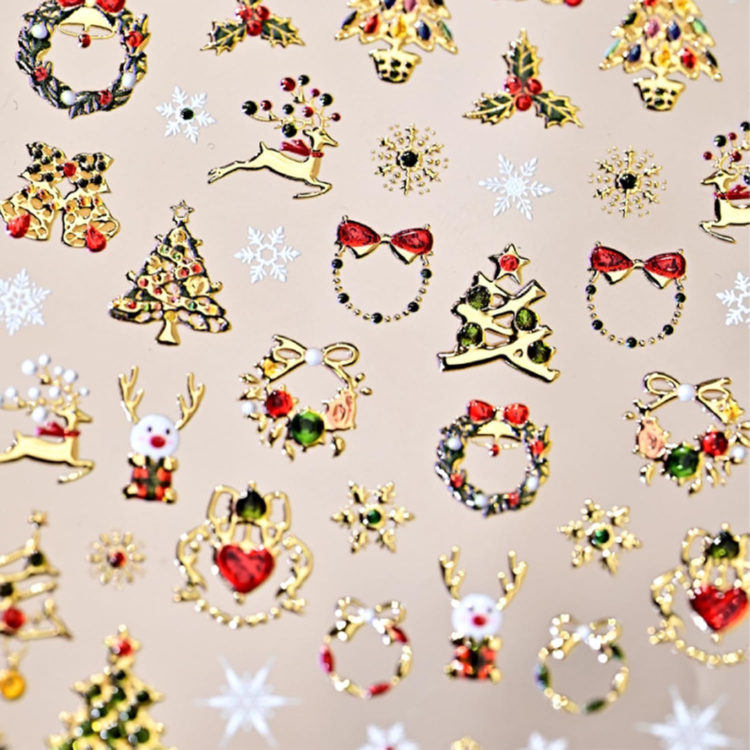 - Wreath Christmas Elements Self-Adhesive Design: 5D cute nail decals for nail art design is simple and quick to use, nail stickers work great on bare nails, they will stay on for a long time and will not peel off your nails, enjoy the feeling of nail art