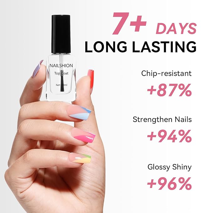- QUICK AIR DRY NAIL LACQUER TOP COAT * 2PCS: With innovative quick-dry formulas, you can say goodbye to long drying times and hello to flawless nails in just 90 seconds. No need for UV/LED lamps or complicated tools to achieve stunning, professional-level results without complex techniques. Nailshion ultra-fast-drying top coat is ideal for busy schedules, allowing you to achieve salon manicures without waiting.