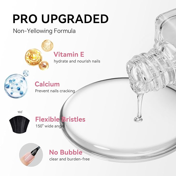 - HEALTHY NON-YELLOWING FORMULA: Formulated with natural, non-toxic, non-yellowing, vegan, and cruelty-free ingredients. It is infused with nourishing vitamin E and calcium, it maximizes color shine, enhances shine and stunning finish, and promotes healthier nails. Maintain your manicure's pristine appearance with our top coat that prevents discoloration and yellowing.