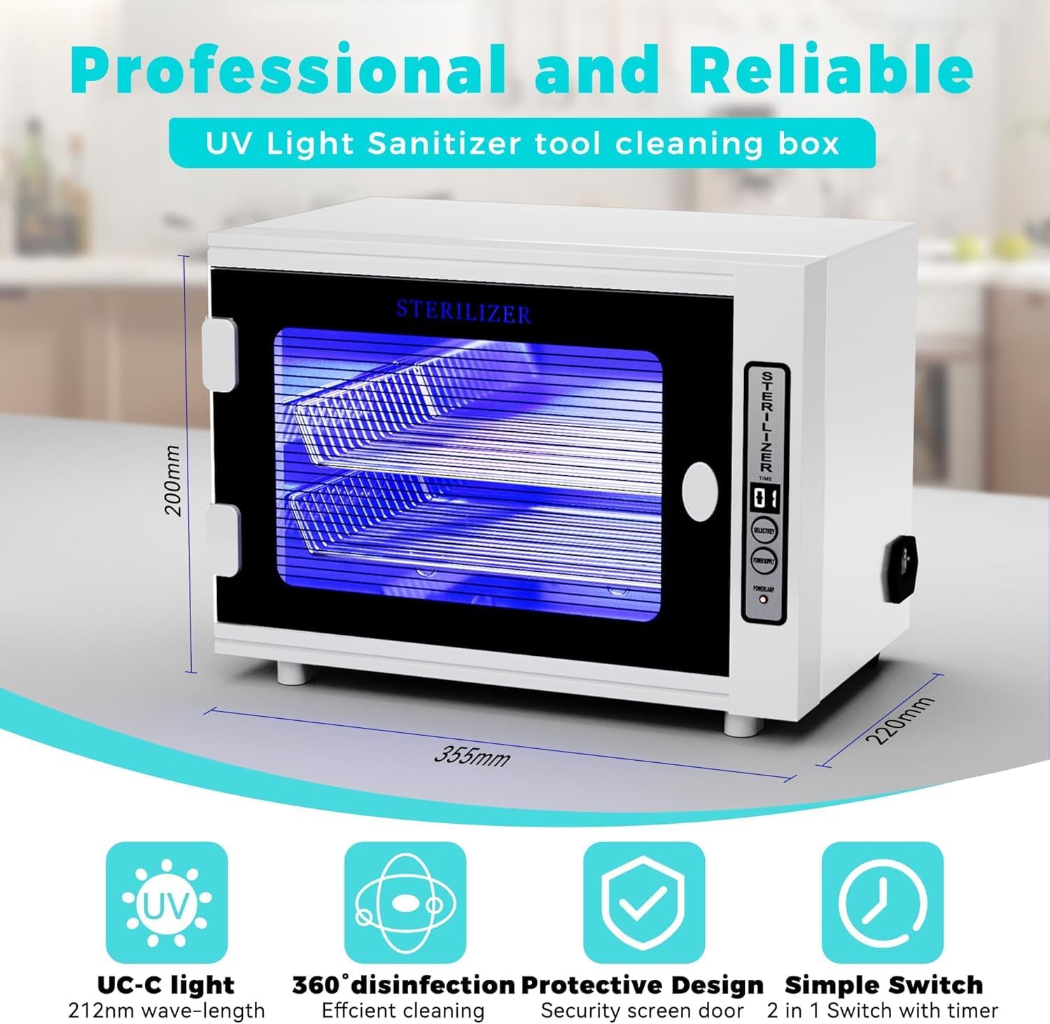 - ๐๐ซ๐จ๐๐๐ฌ๐ฌ๐ข๐จ๐ง๐๐ฅ ๐๐ง๐ ๐๐๐ฅ๐ข๐๐๐ฅ๐ - Using our Nail Tool Cabinet you can effectively clean 99% of contaminants from any object. Our 12L capacity Nail Toolbox operates at a 212nm wavelength, ensuring a 360ยฐ clean of your phone, cutlery, or toothbrushes in just 10 minutes.