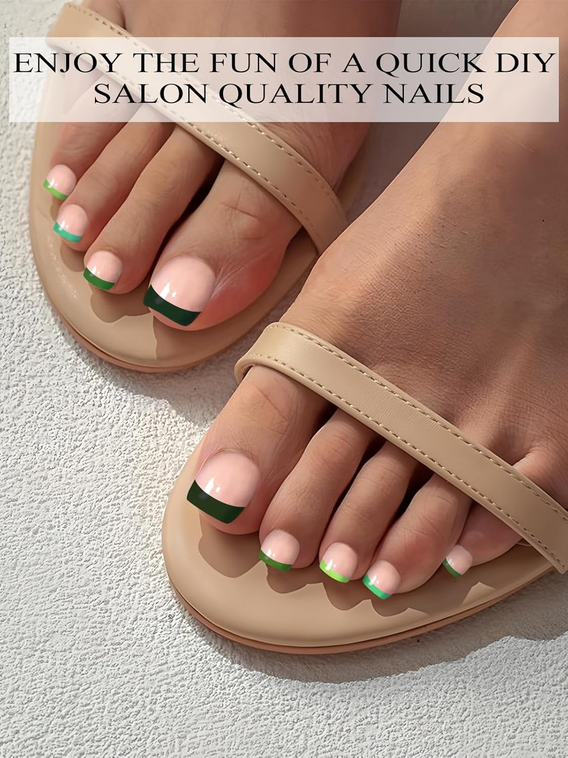 EBANKU 52Pcs Semi-Cured Gel Nail Strips Toes, Green Deep French Gel Nail Strips for Toes, Long-Lasting French Manicure Stickers Salon Nails at Home Requires UV Light with Nail File&Stick