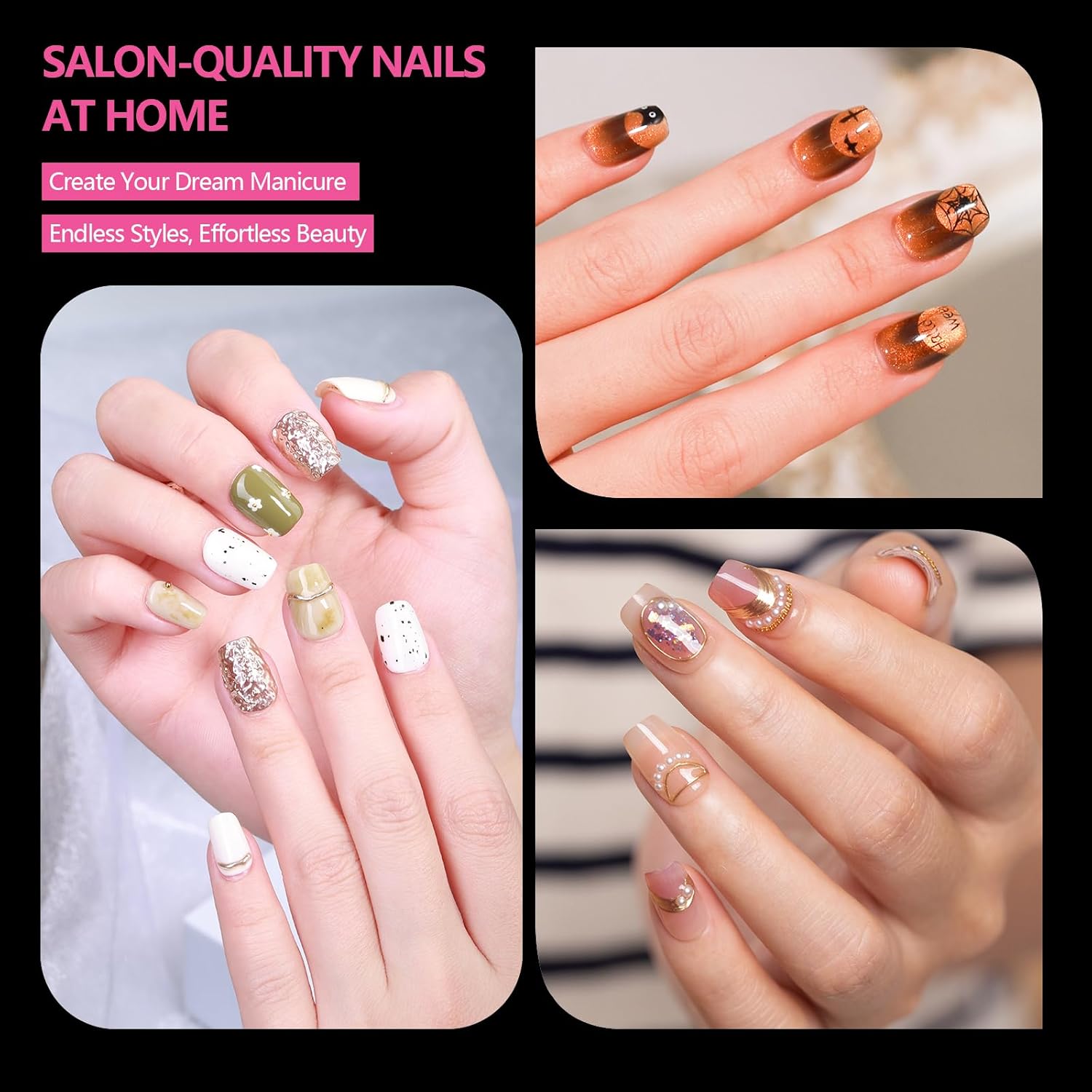 - Versatile & Long-Lasting: Compatible with gel polish, acrylic, dip powder, and poly gel, these fake nails last 3+ weeks with proper use. Safe and non-toxic, they’re perfect for nail art or DIY gel x nail kit designs.