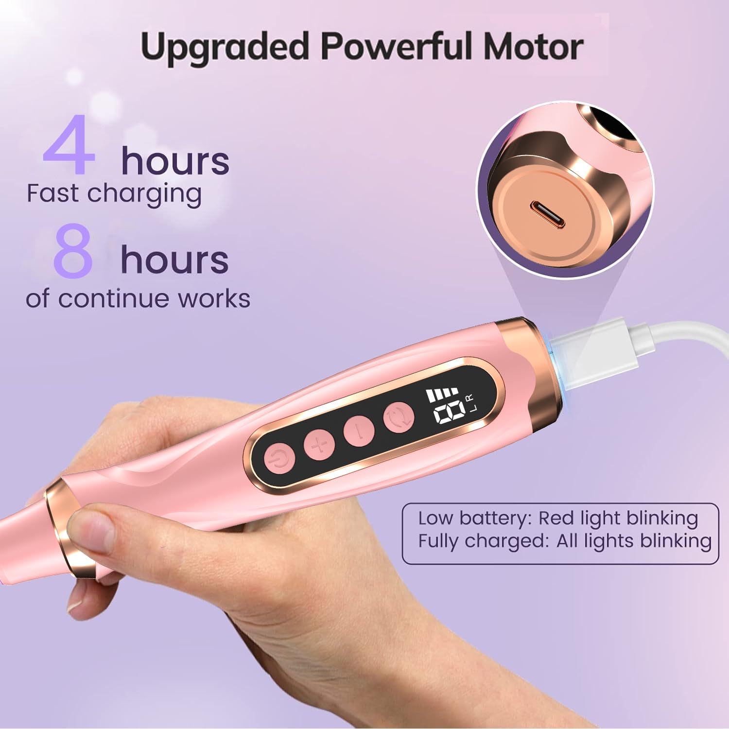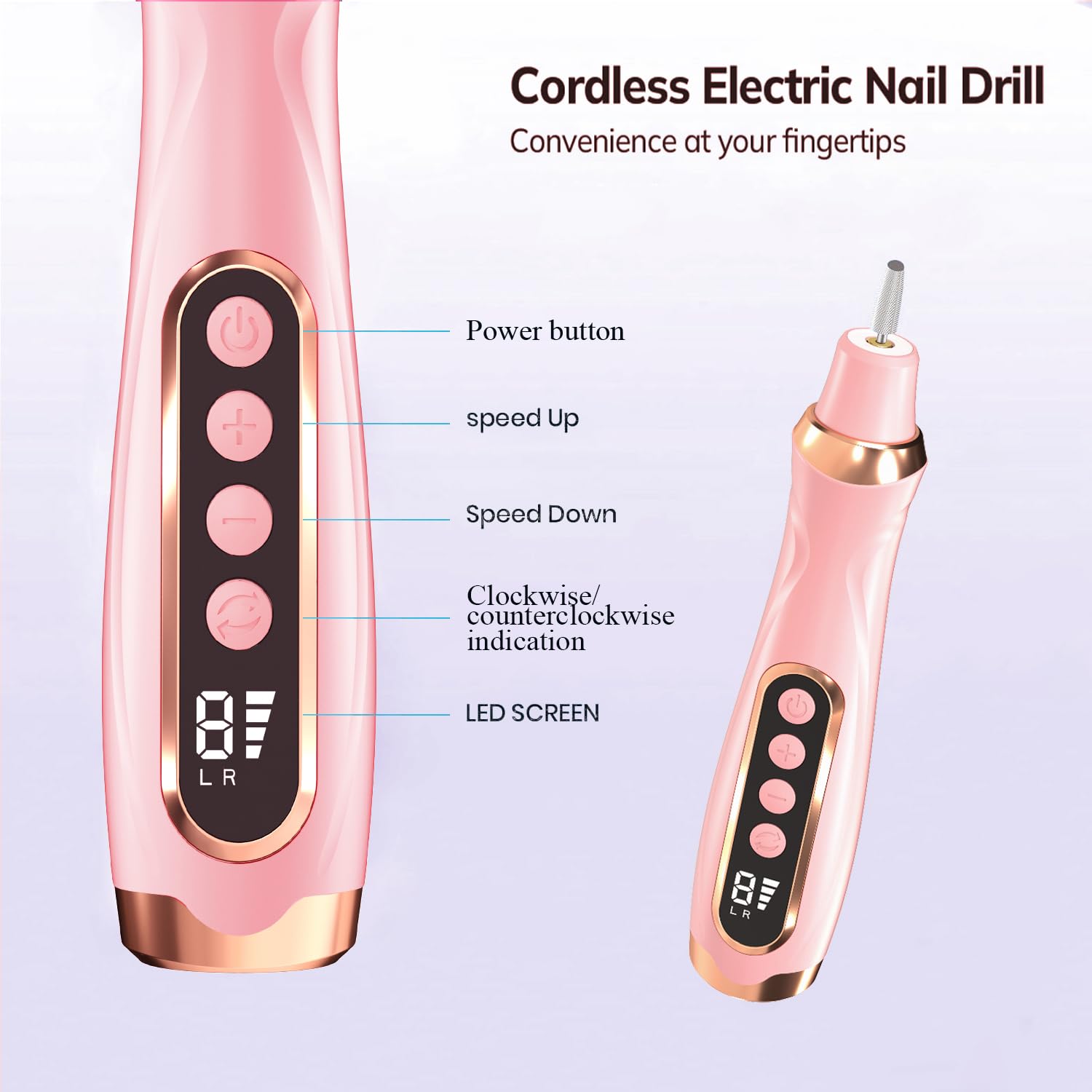 - Cordless and rechargeable: The cordless electric nail drill is perfect for travel and offers an impressive 10 hours of operation time. A convenient pedicure tool for feet and all your mani pedi needs. Our nail file is suitable for natural, acrylic, gel and dip powder nails