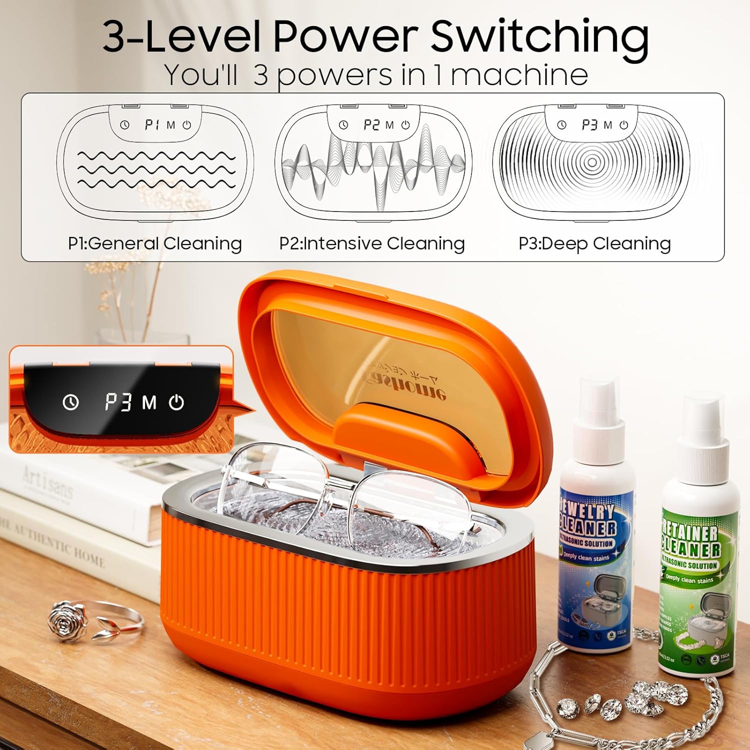 - 【45KHz and 3 Power Modes】Fashome professional ultrasonic jewelry cleaner is powered by 100-240V, 3 pre-settings power(P1-P2-P3)and it can generate 45000Hz ultrasonic waves to remove dirt and grime from jewelry in a short time. when you go for an ultrasonic cleaner that has an adjustable power function, you will not be limited to a few surfaces. You will be able to clean a variety of surfaces, including jewelry with an extremely sensitive surface, and save energy.