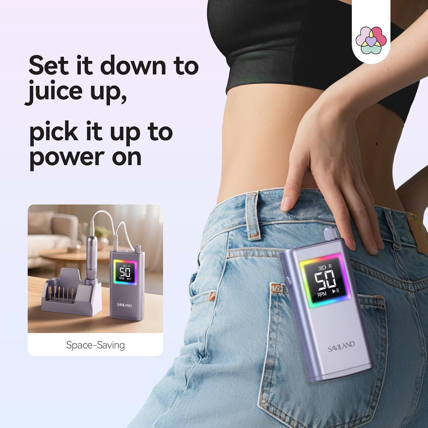 SAVILAND Advanced 50000 RPM Nail Drill Professional: Aluminium Alloy 10S Fast Removal Electric Nail File Portable Nail Filer Electric Nail Drill Bits Pro Acrylic Nail Manicure Nail Tools