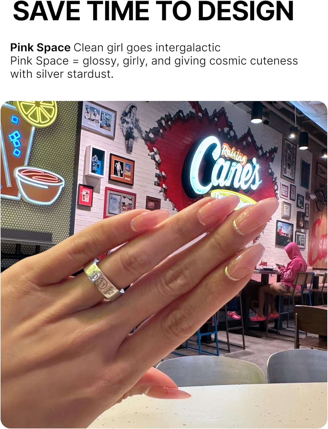 UUUUUU Semi Cured Gel Nail Strips | Salon-Quality | UV Free Gel Nail Wraps for Women | Easy Peel&Stick | Long-Lasting up to 14 Days | 28 Strips Set+File & Wipes | Gift-Ready(UGN118 Space Pink)