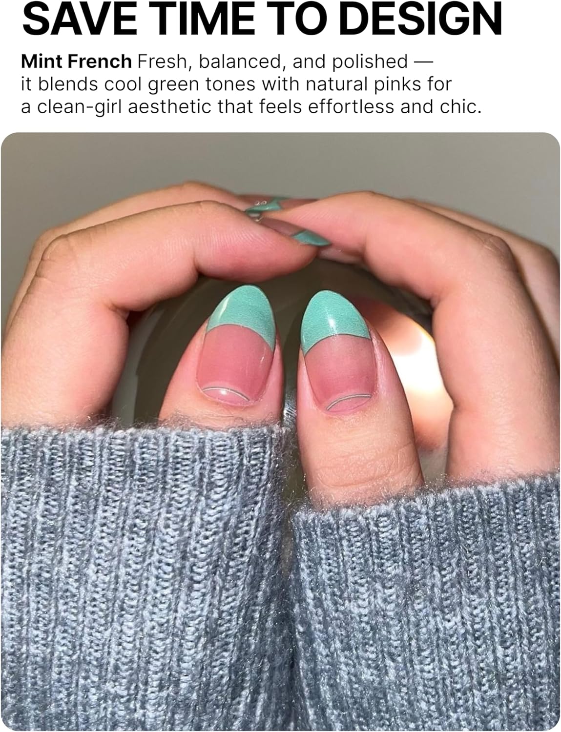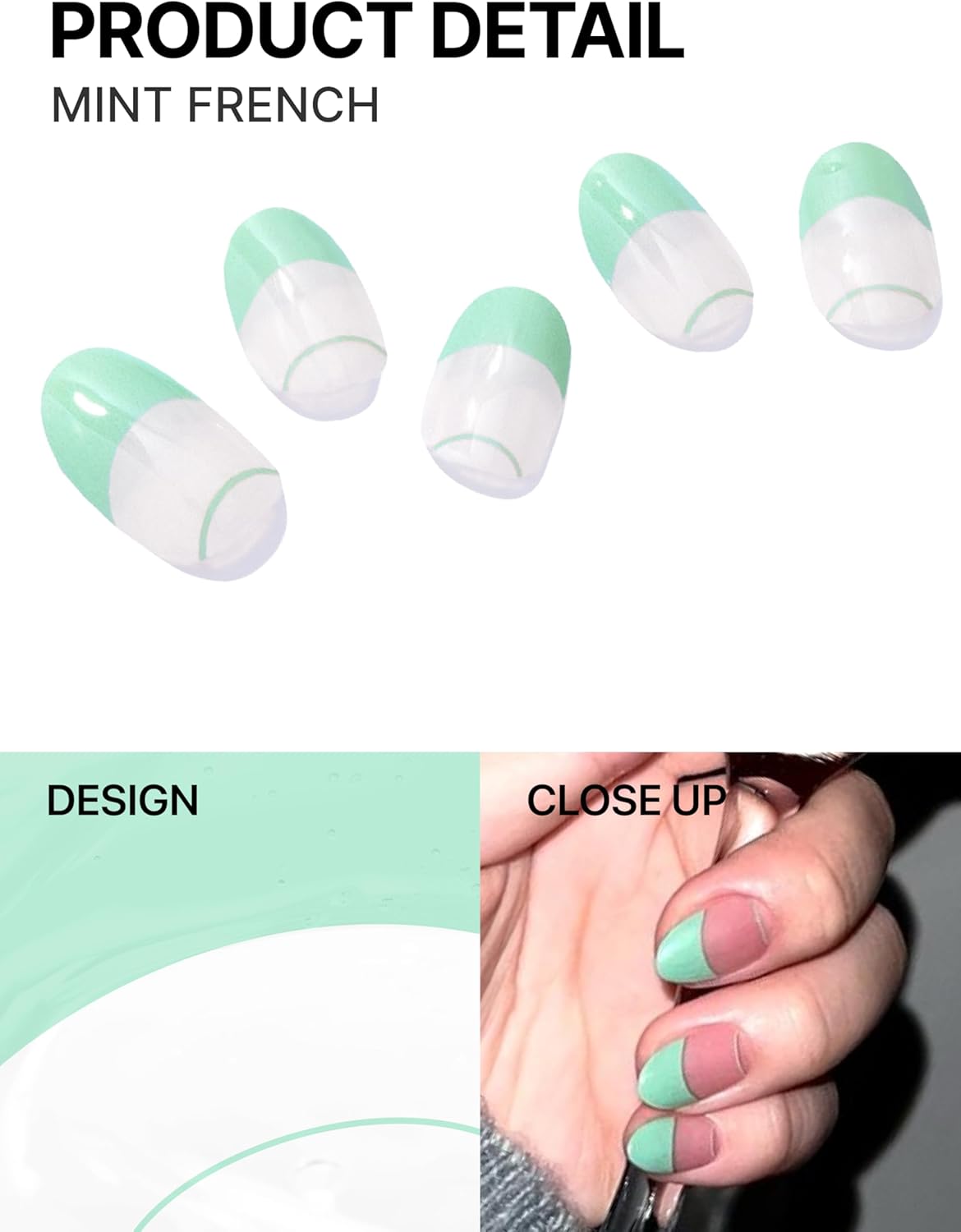 UUUUUU Semi Cured Gel Nail Strips | Salon-Quality | UV Free Gel Nail Wraps for Women | Easy Peel&Stick | Long-Lasting up to 14 Days | 28 Strips Set+File & Wipes | Gift-Ready (UGN104 Mint French)