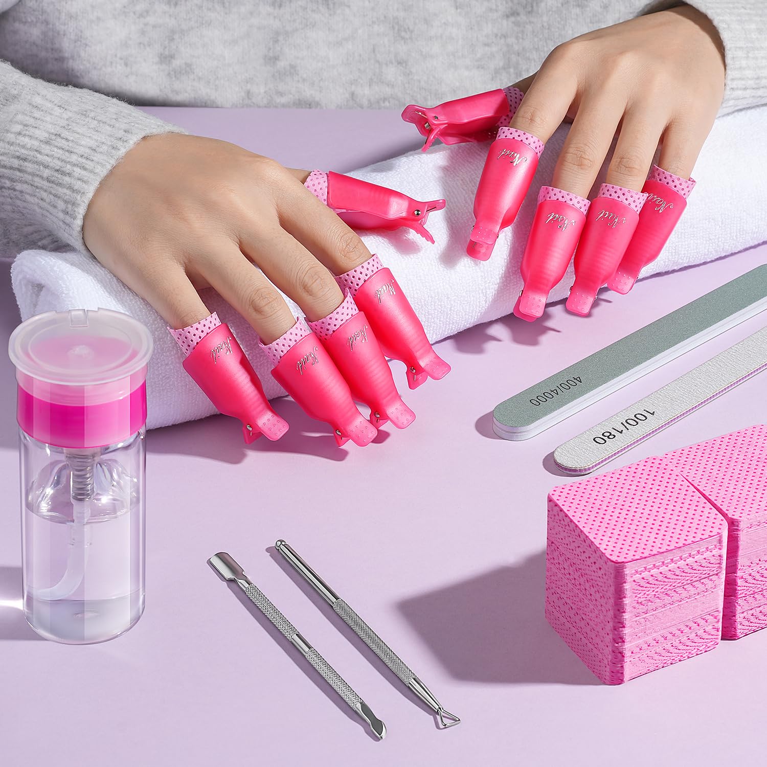 TsMADDTs Gel Nail Polish Remover Tools Kit with 540 Lint Free Wipes, 10 Soak Off Clips, 100ml Nail Polish Remover Bottle, Cuticle Pusher/Peeler, File, Buffer Block