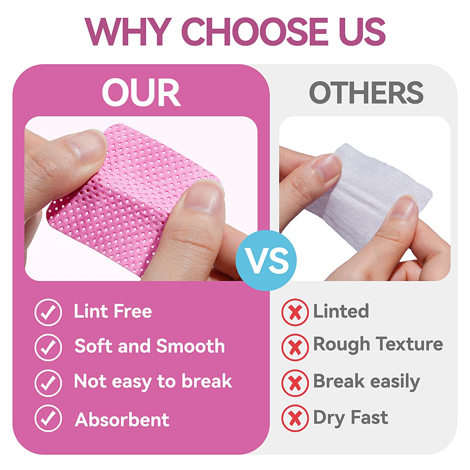 - Lint-Free Nail Wipes: These 540 high-quality, non-woven nail wipes meet the needs of both personal nail care and professional technicians. The soft and gentle material of lint free nail pads prevents damage to the nail surface, ensuring a great and smooth finish during application or removal of nail polish. Its lint-free design guarantees a clean and professional result every time