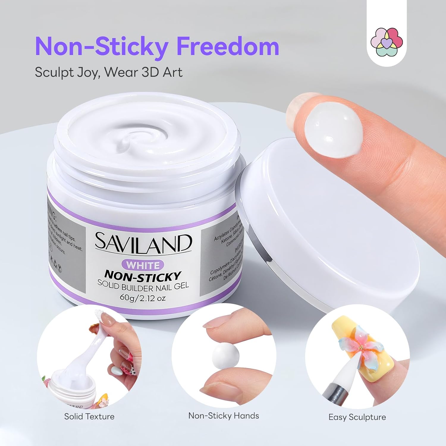 SAVILAND White Solid Builder Nail Gel Kit: Non-Sticky 60 g Sculpture Gel for Nail Art with Chrome Powder Sequins Sculpture Pen Non-Wipe Extensions 3D Nails Art Designs DIY Home