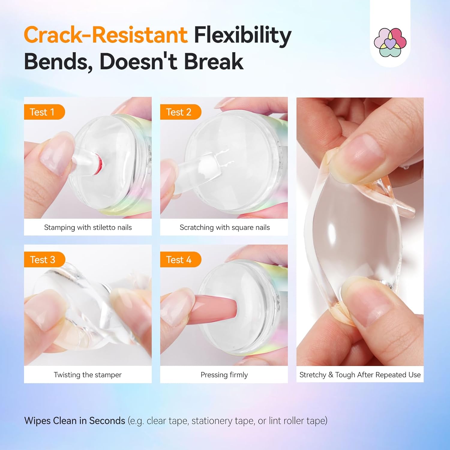 SAVILAND Essentials Nail Stamp Heads: 6 PCS Clear Nail Stamper Head Long & Short Jelly Silicone Nails Art Stamp Crack-Resistant French Tip Stamp Replacement Heads Nail Tech French Manicure Tools