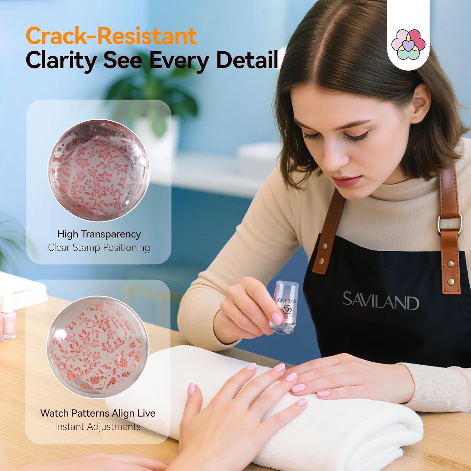 - SAVILAND Silicone Nail Stamp: Our nail art stampings are made of softer upgraded silicone material. For pointed and square nails, please press gently during making french nails to avoid cracking of the silicone head
