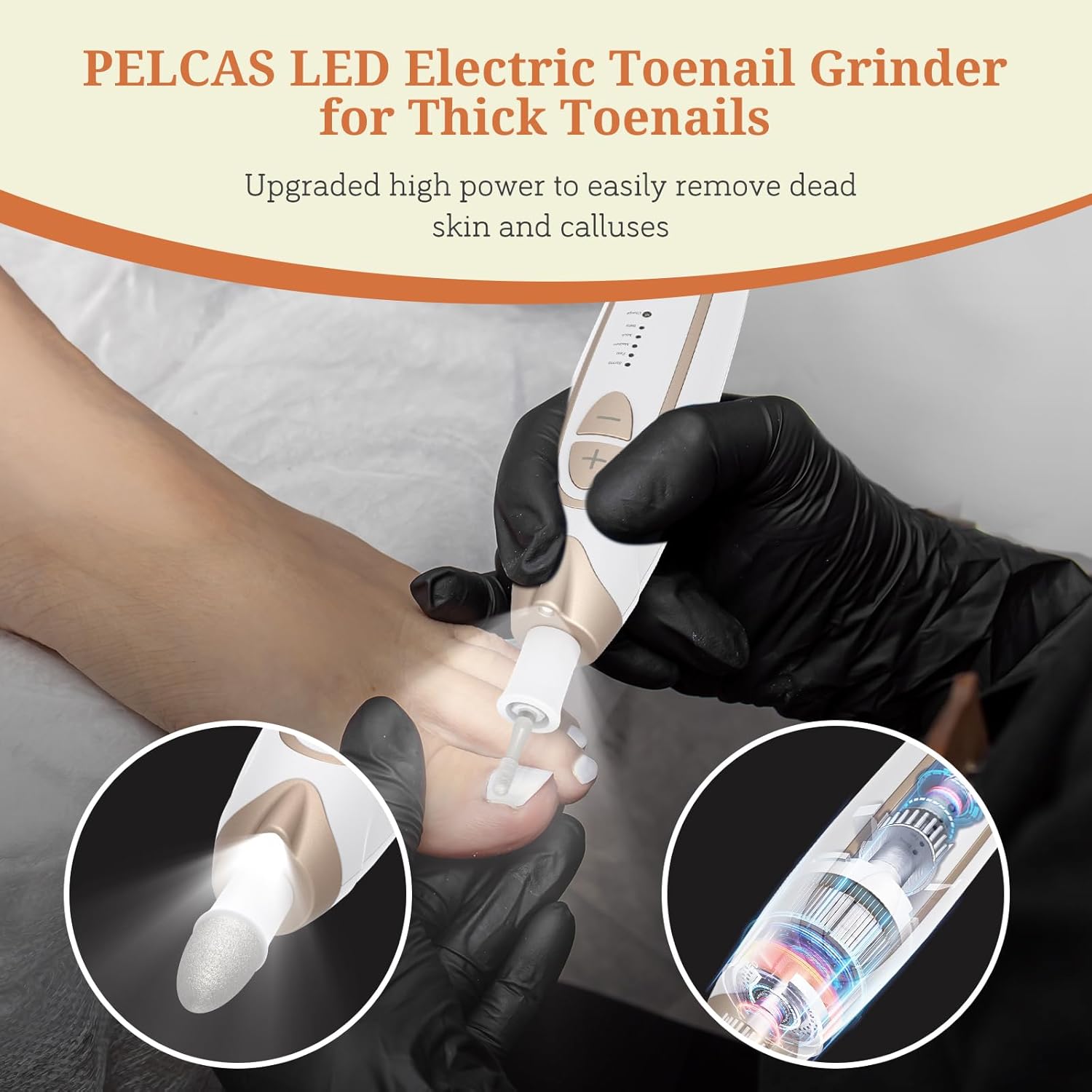 PELCAS Electric Toenail Grinder for Thick Toenails, 5 Speeds Manicure and Pedicure Kit, Cordless Nail Drill with LED Light, Electric Nail File for Human, Pet, Thick Toenails, Natural & Acrylic Nails