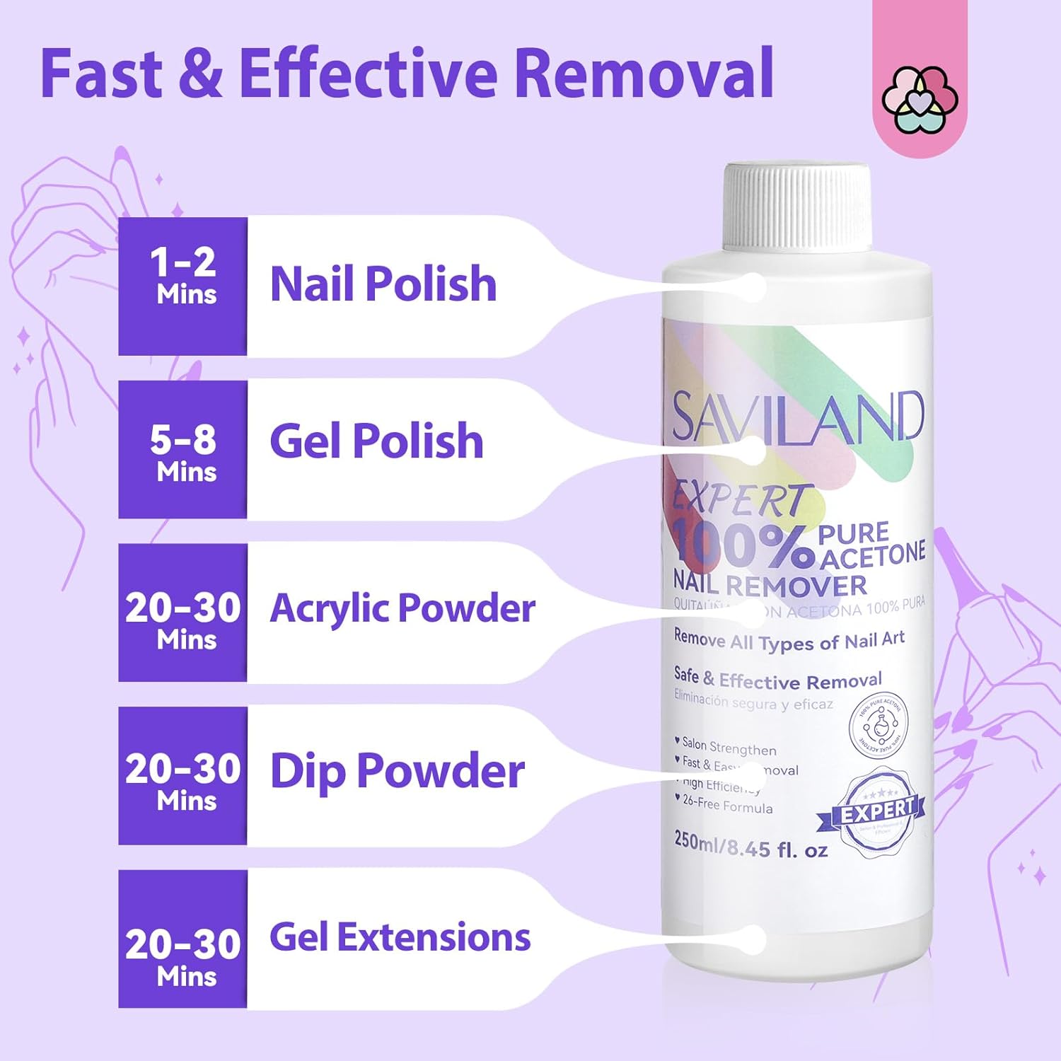 SAVILAND Pure Acetone Nail Polish Remover Kit: Gel Polish Remover with Professional Nail Polish Removal Tools Safe Gel Remover for Nails Fast & Easy Removal with Cuticle Oil Salon Home DIY 250 ML
