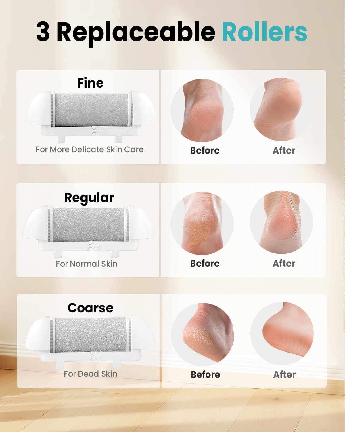 - Pro Rollers, Precise Finish: Swap coarse/medium/fine heads to match your skin. Pro grinding with interchangeable files works as a file grinder sander for heels and soles—an effective remover for stubborn calluses
