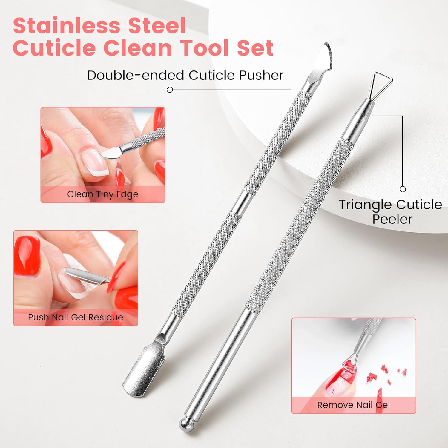 - With Accessories for Complete Nail Care: Enhance your nail care routine with our manicure soaking bowl, which comes complete with a cuticle pusher, cuticle peeler, nail file and buffer. These nail remover tools are crafted to assist in the removal of dead skin and the smoothing of nails, providing a comprehensive solution for all your nail care needs.