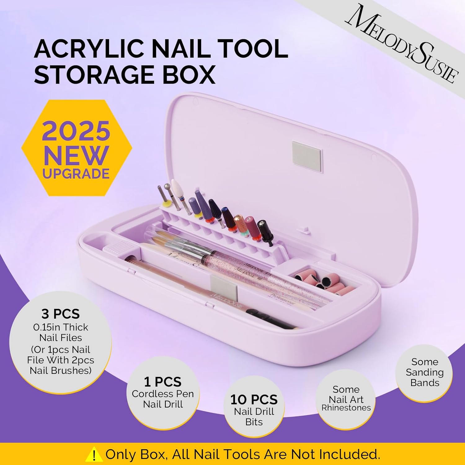 [2025 Upgraded]MelodySusie Acrylic Nail Tool Storage Box,Portable Dustproof Stand Displayer Holder Organizer Container Manicure Efile Accessories Nail Drill Kit Case,Travel Salon Home,Purple(Only Box)