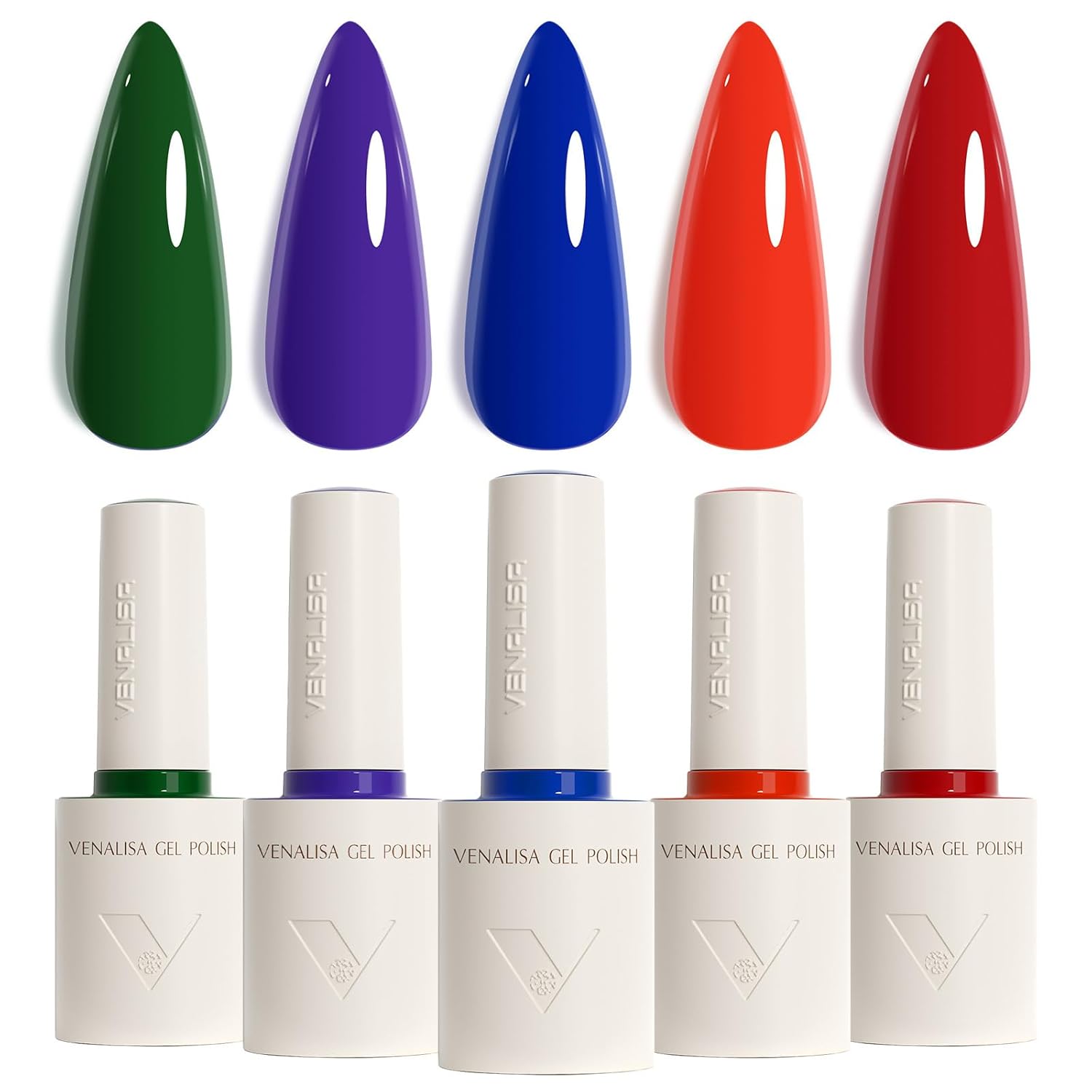 VENALISA Gel Nail Polish Set, 5 Colors 10ML Gel Polish Kit Red Orange Purple Dark Green Navy Blue Color Soak Off Salon Manicure DIY at Home Nail Art For Girls Women