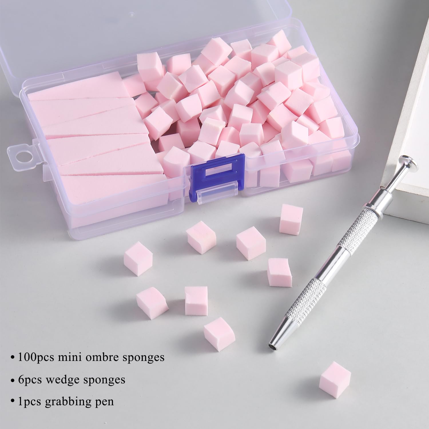 - 【You will get】 There are 100pcs mini soft sponges for ombre nail art, 6pcs wedge sponges for gradient nail design, 1pcs silver pen for grabbing mini sponges.