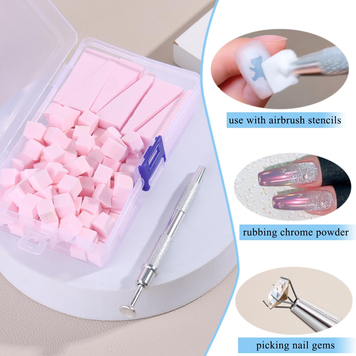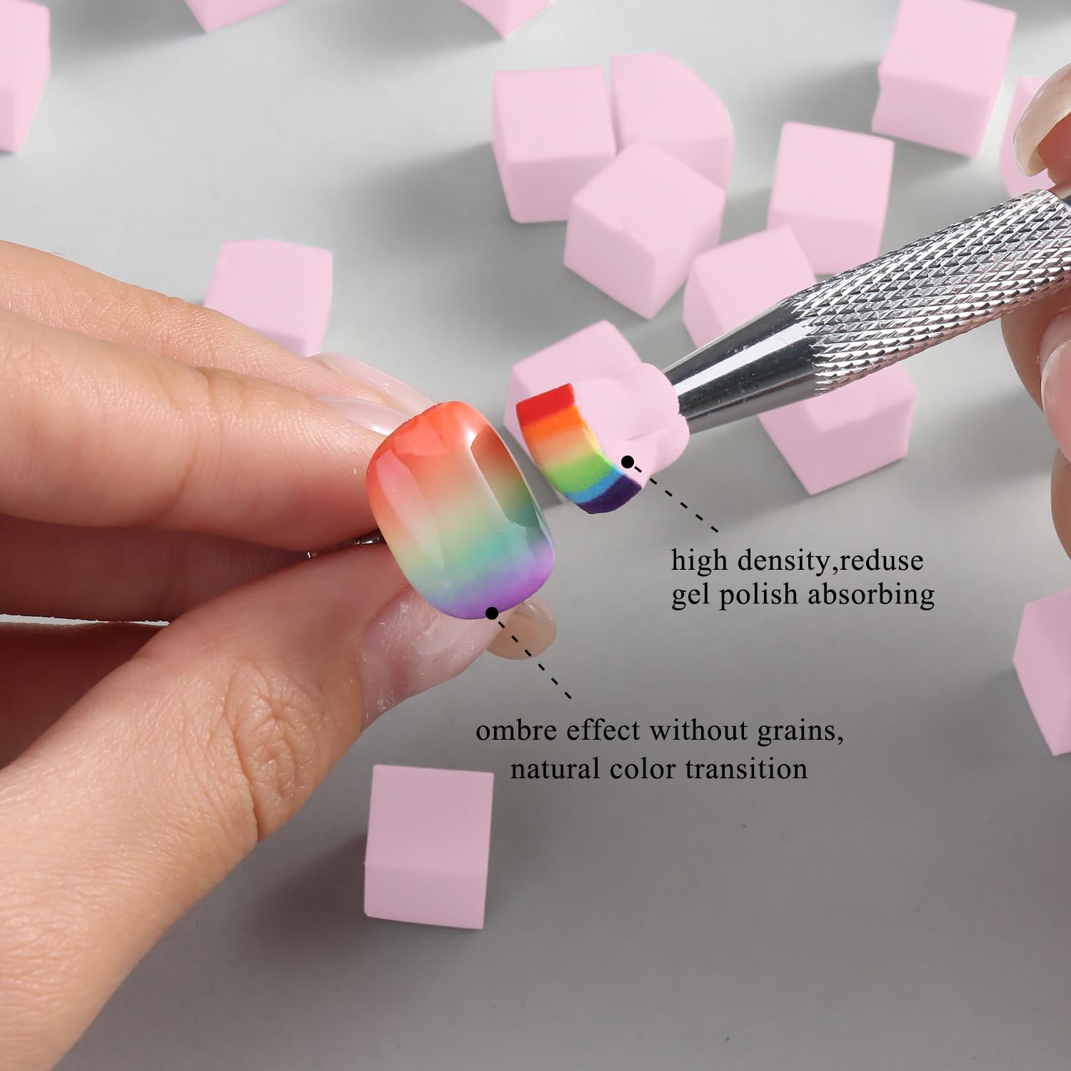100Pcs Soft Nail Sponges for Ombre, Gradient Effect Pink Nail Art Sponges With Grabbing Pen 6Pcs Wedge Sponges Aura Nails Ombre Nail Brush Professional Accessories Manicure Salon Supplies