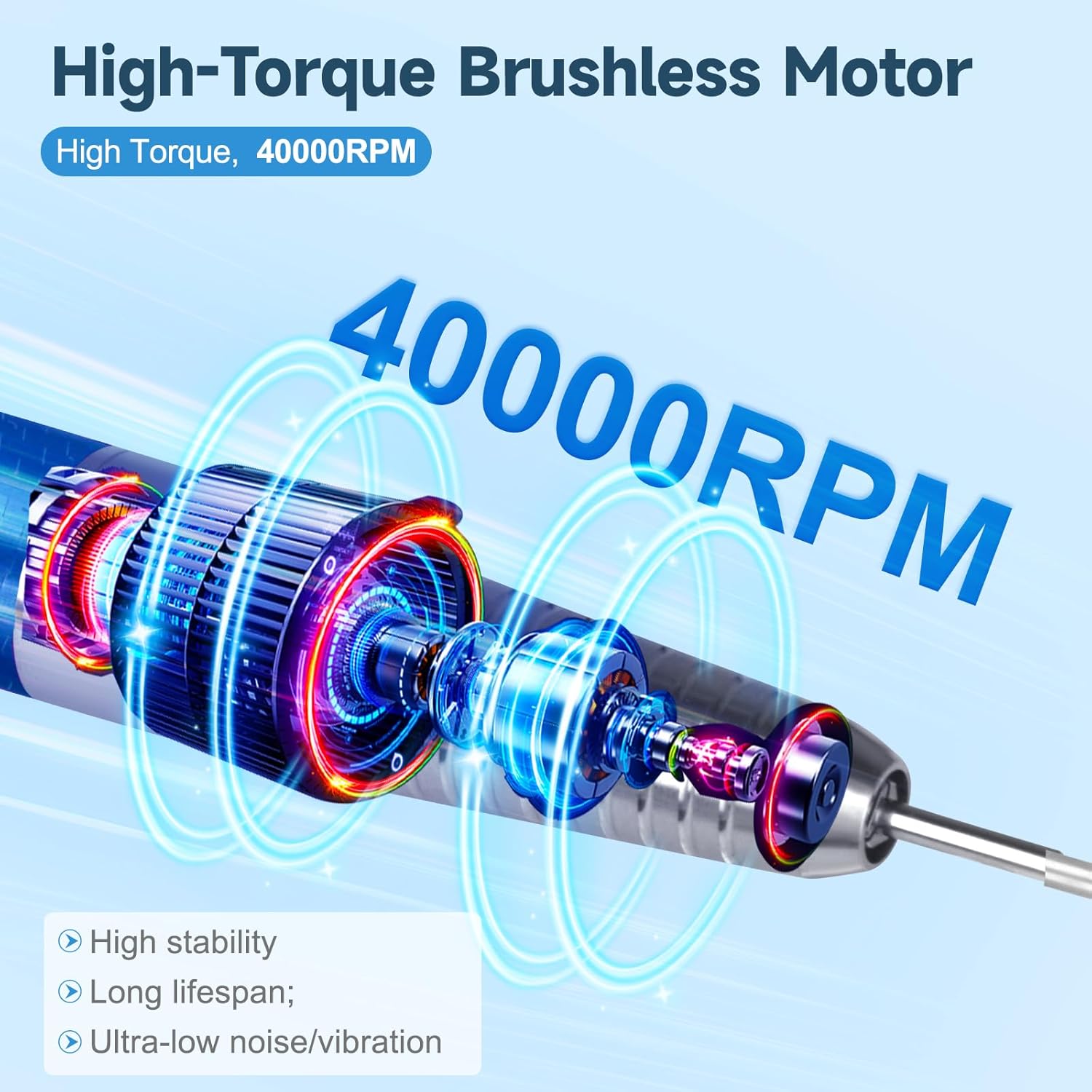 - Brushless Motor 40000RPM: The brushless handle has longer service life, low sound, low vibration and more stable performance than the ordinary handle.