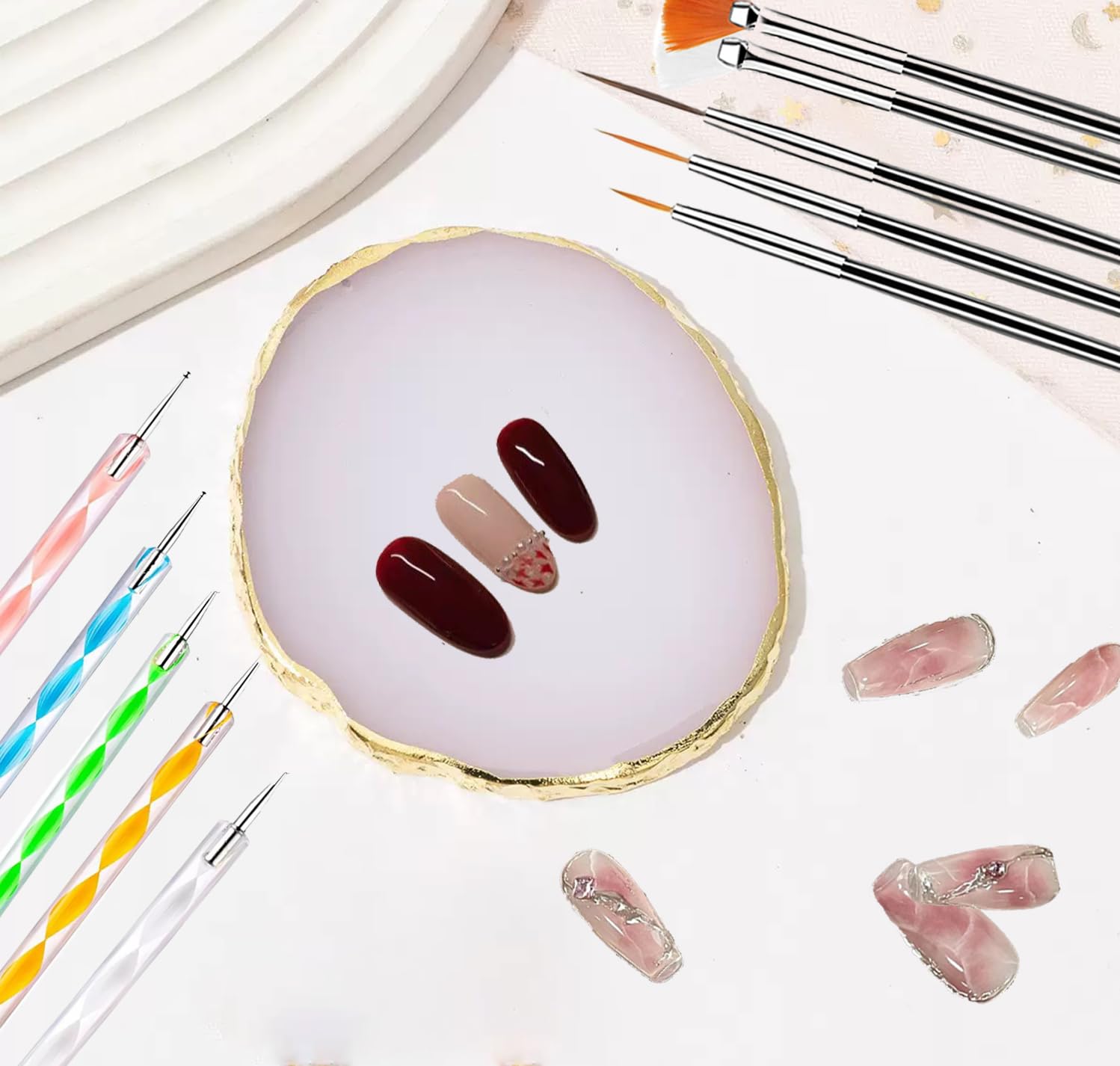 - 【1 Nail Art Palette】 Beautiful agate stone style, not only can you mix colors, but also can be used as a nail art display and shooting props. Made of high quality resin material, the nail polish palette has a smooth surface and feels comfortable in hand. Made of high-quality materials, non-deformation, non-corroding, durable for longer use. Very easy to clean, just rinse with water and dry with paper.