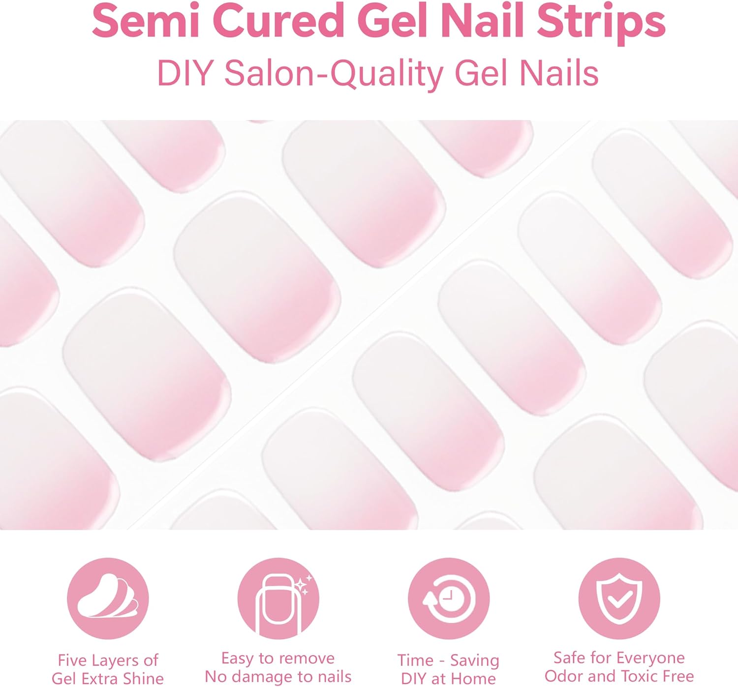 - ✨【Stays Neat & Tidy】Forget the clutter of traditional nail kits and bulky press-ons. Our semi-gel nail strips are thin, flexible, and come in a sleek, compact package, making storage a breeze and keeping your space organized.