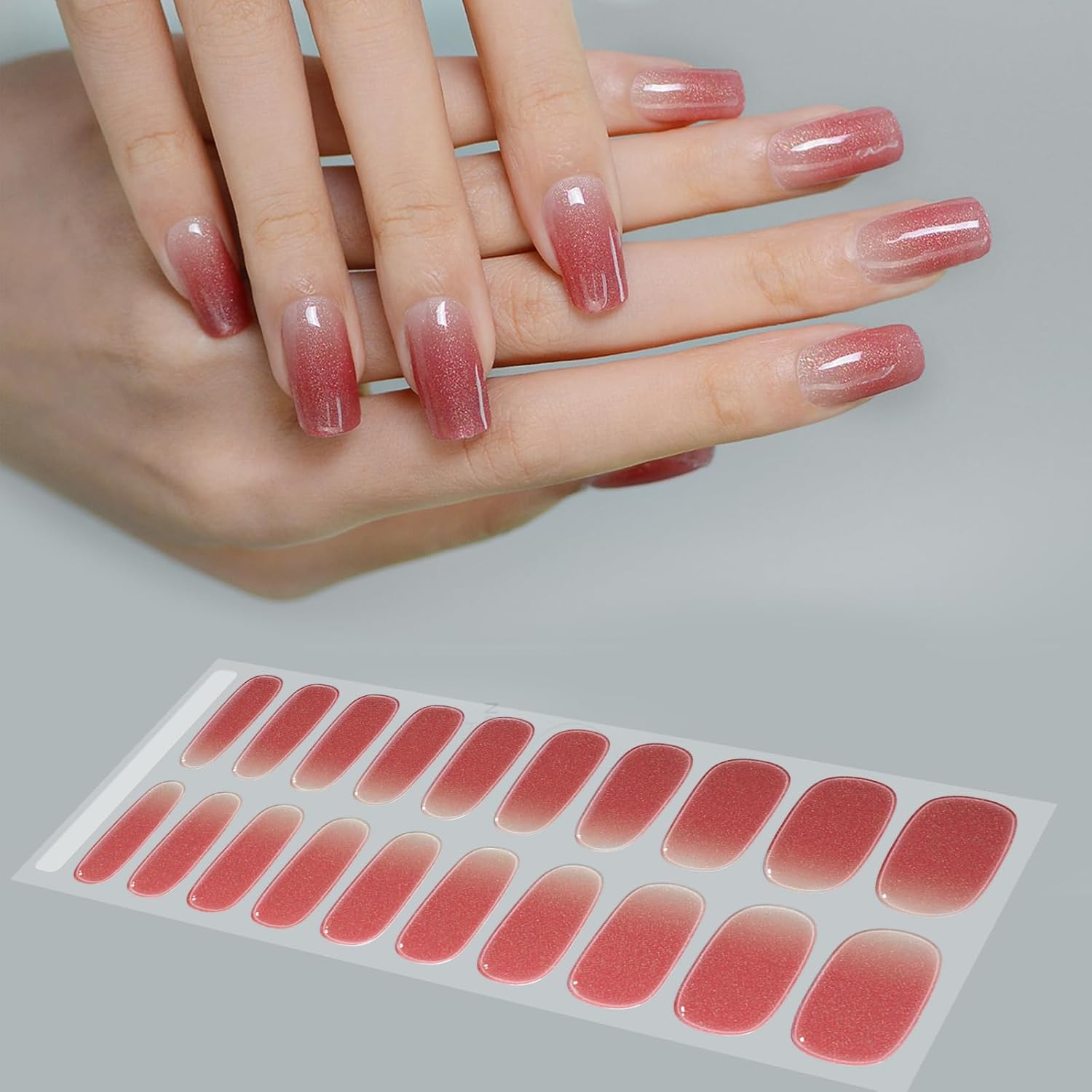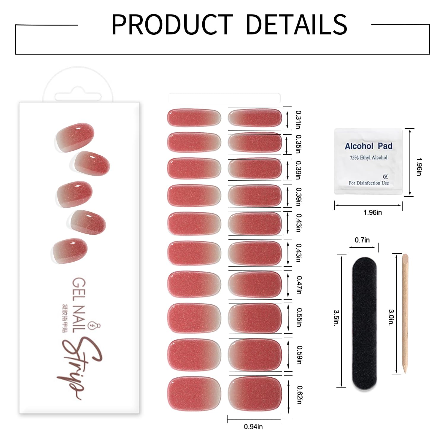 - PINK GRADIENT GLITTER DESIGN SEMI CURED GEL NAIL STRIPS - Each stylish box includes 1 sheet with 10 sizes, totaling 20 strips in a unique blend of Pink Gradient Glitter hues, embodying sophistication and cuteness. Additionally, it provides adaptability with 2 strips per size, catering to various nail lengths.