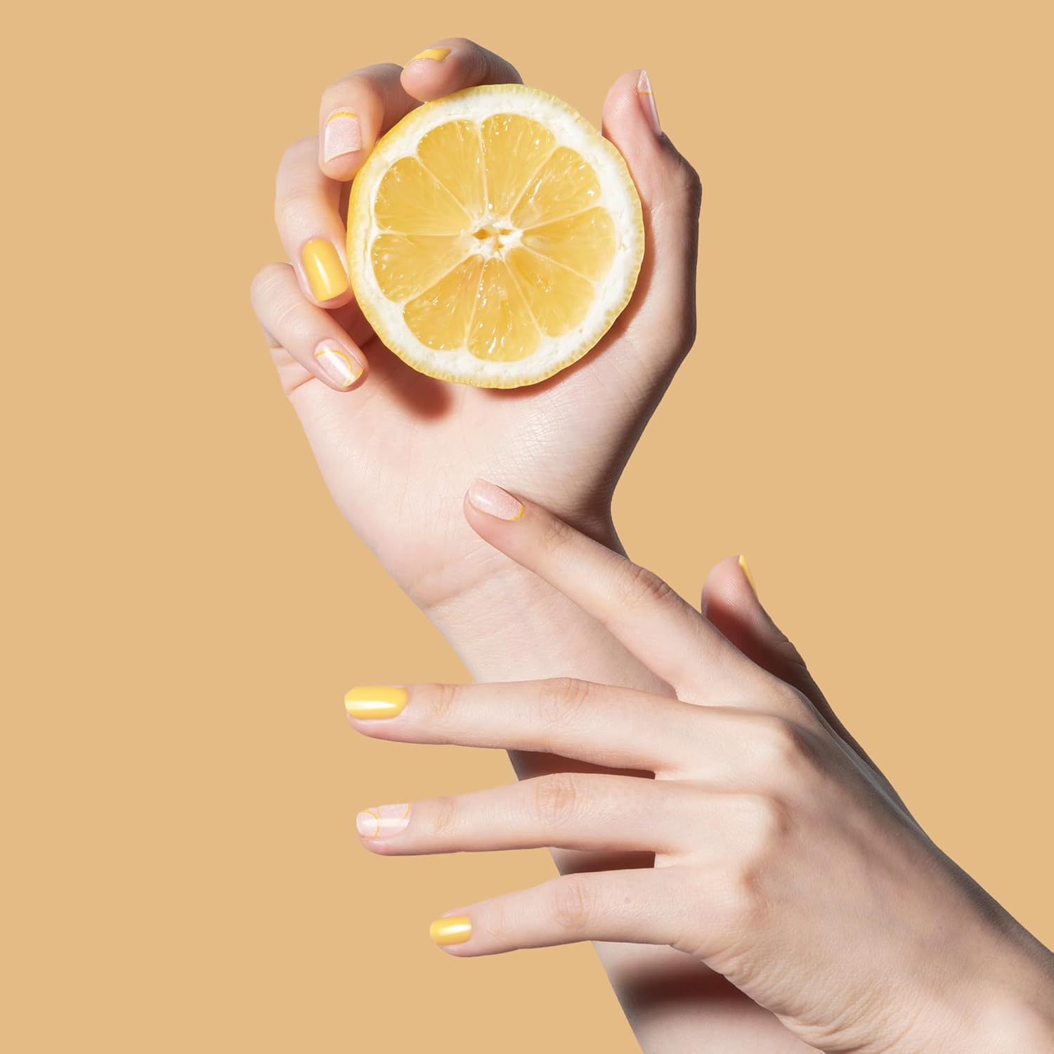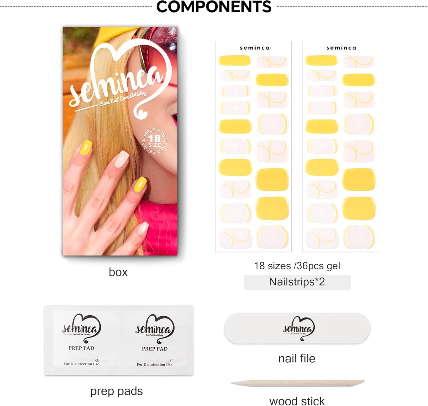 Semi Cured Gel Nail Strips-Salon Quality Semi-Cured Gel Press On Nails Stickers Quick DIY Nail Art Manicure Kits for Women at Home Works with Any UV/LED Lamps(Lemon Summer)