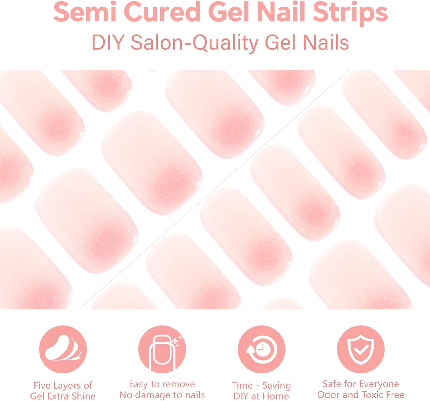 - ✨【Stays Neat & Tidy】Forget the clutter of traditional nail kits and bulky press-ons. Our semi-gel nail strips are thin, flexible, and come in a sleek, compact package, making storage a breeze and keeping your space organized.