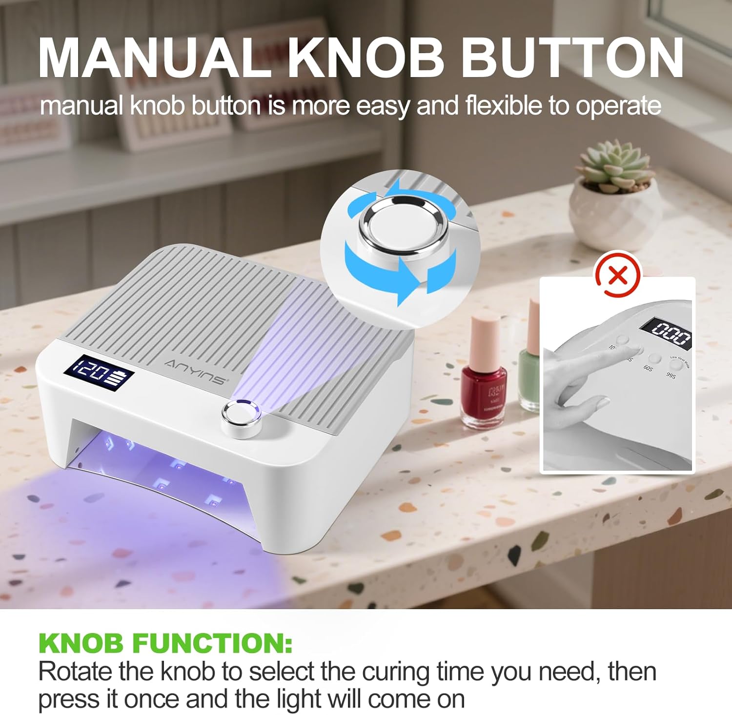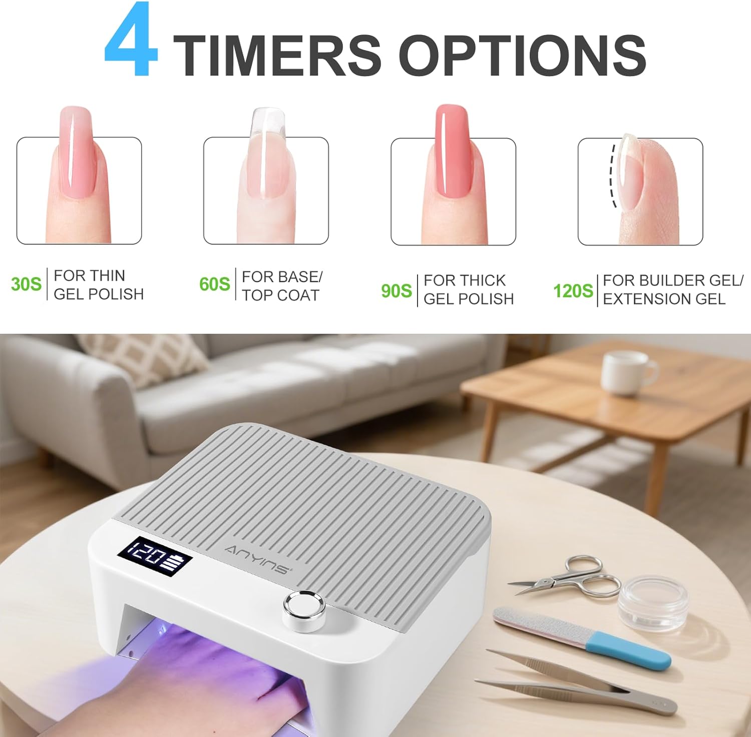 - Smart Auto Sensor & Precision Timer Settings: This intelligent gel nail light offers four customizable timer settings (30s/60s/90s/120s) to perfectly match your gel polish needs. The motion-activated sensor automatically turns the UV nail lamp for gel polish on when hands are inserted and off when removed, while the bright LCD keeps you informed