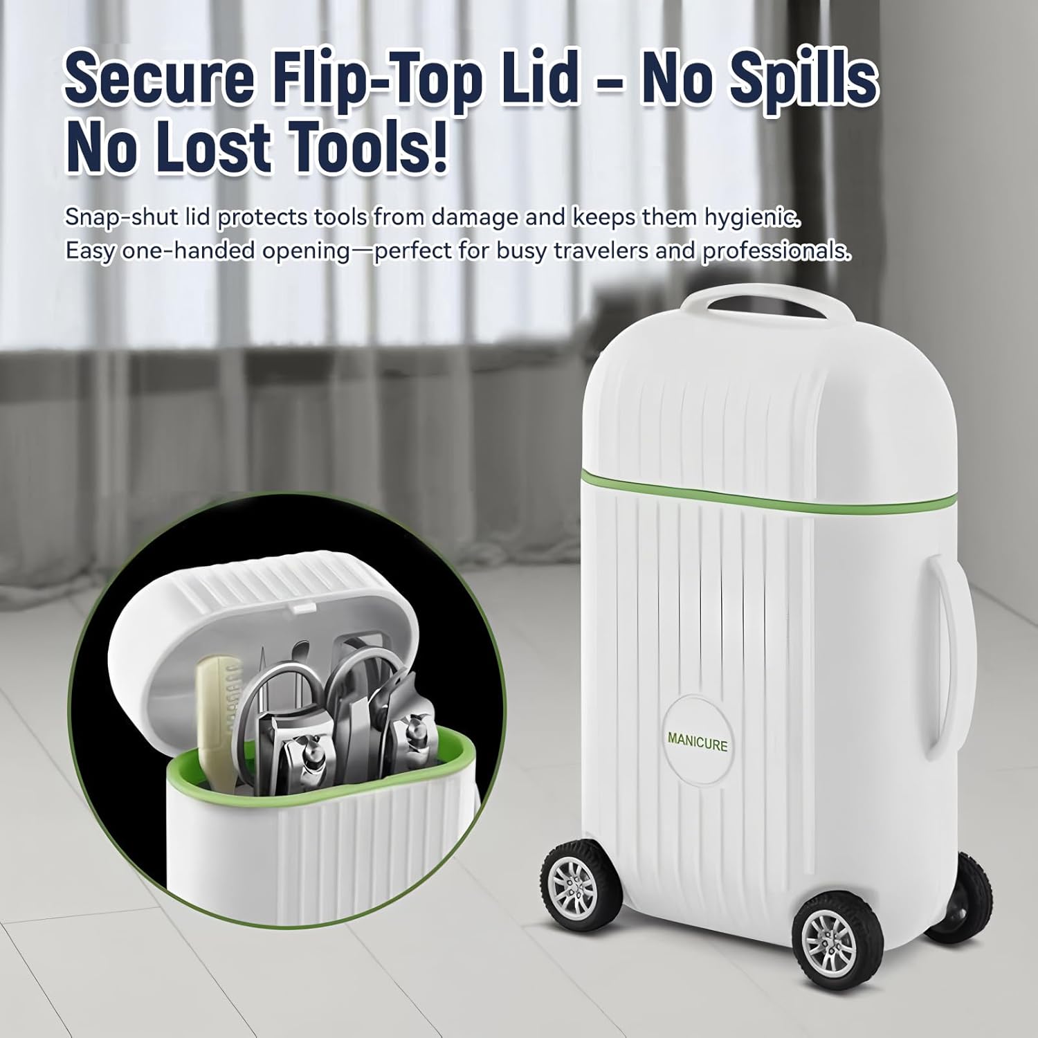 - TRAVEL-INSPIRED DESIGN: Stylish mini suitcase-shaped nail care kit with flip-top lid - a unique and functional conversation starter perfect for travelers and daily use