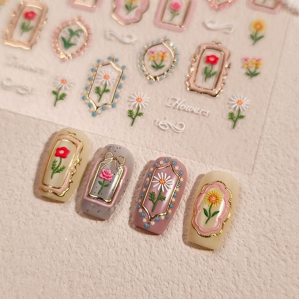 - VERSATILE PATTERNS: Beautiful collection of tulips, daisies, and roses in vintage-style frames, perfect for spring and summer nail designs