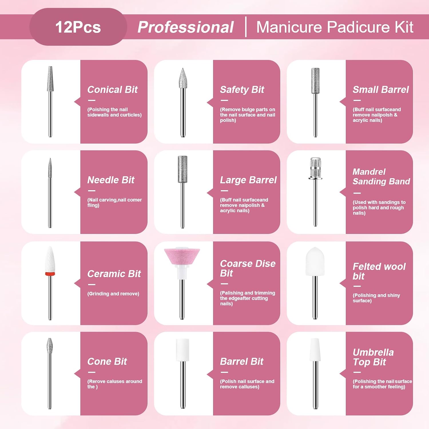 - Professional Manicure and Pedicure Set: This electric nail file is crafted for hand and foot care, catering to all-round shaping, buffing, grinding, polishing, cuticle maintenance, tough skin removal, and callus treatment. It's an excellent manicure set for women, suitable for trimming, grinding, and polishing natural nails, and includes a toenail grinder kit for thicker nails. You'll find this electric nail drill highly beneficial!