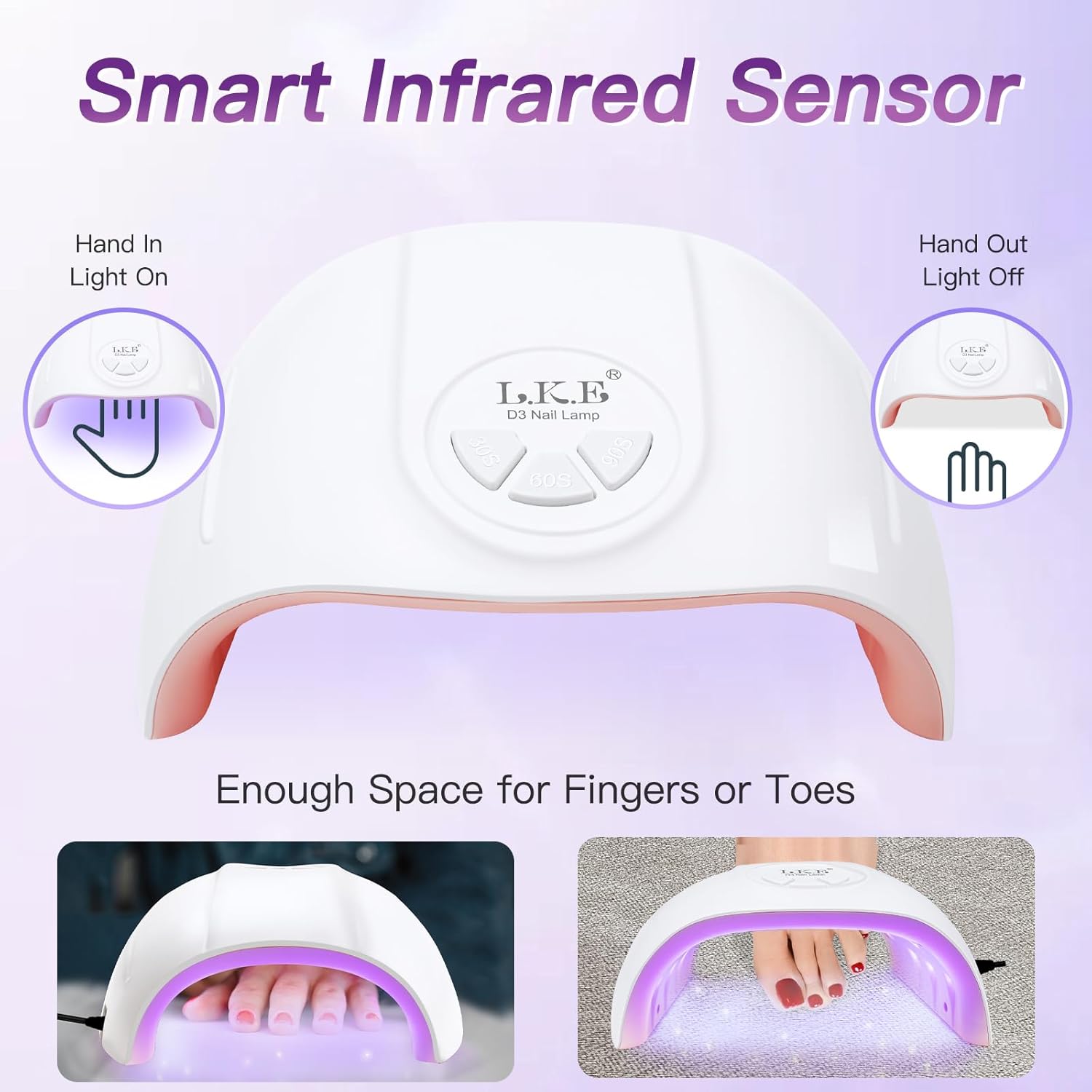 - Smart Sensor & Eye-Safe Lighting: Hands-free operation! The motion sensor activates curing instantly. Gentle UV-free LEDs protect skin and eyes while working. Customizable timers give total control for delicate nail art layers