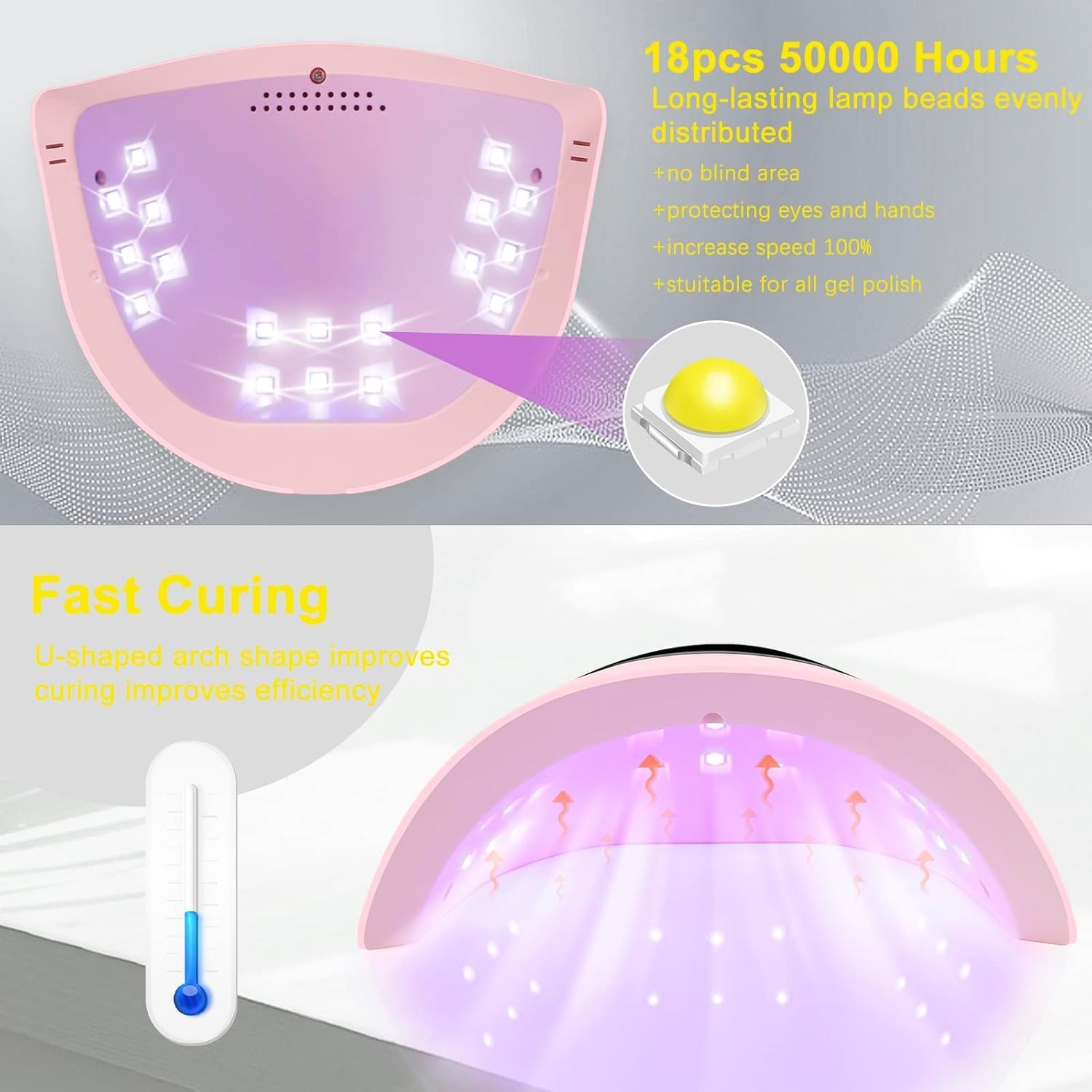 - Easy to Use: Upgraded 72W nail art lamp with touch screen, 18pcs lamp beads evenly distributed inside and on both sides of the nail lamp. Comes with an adapter and be sure to use the original adapter, this UV nail lamp is a great choice