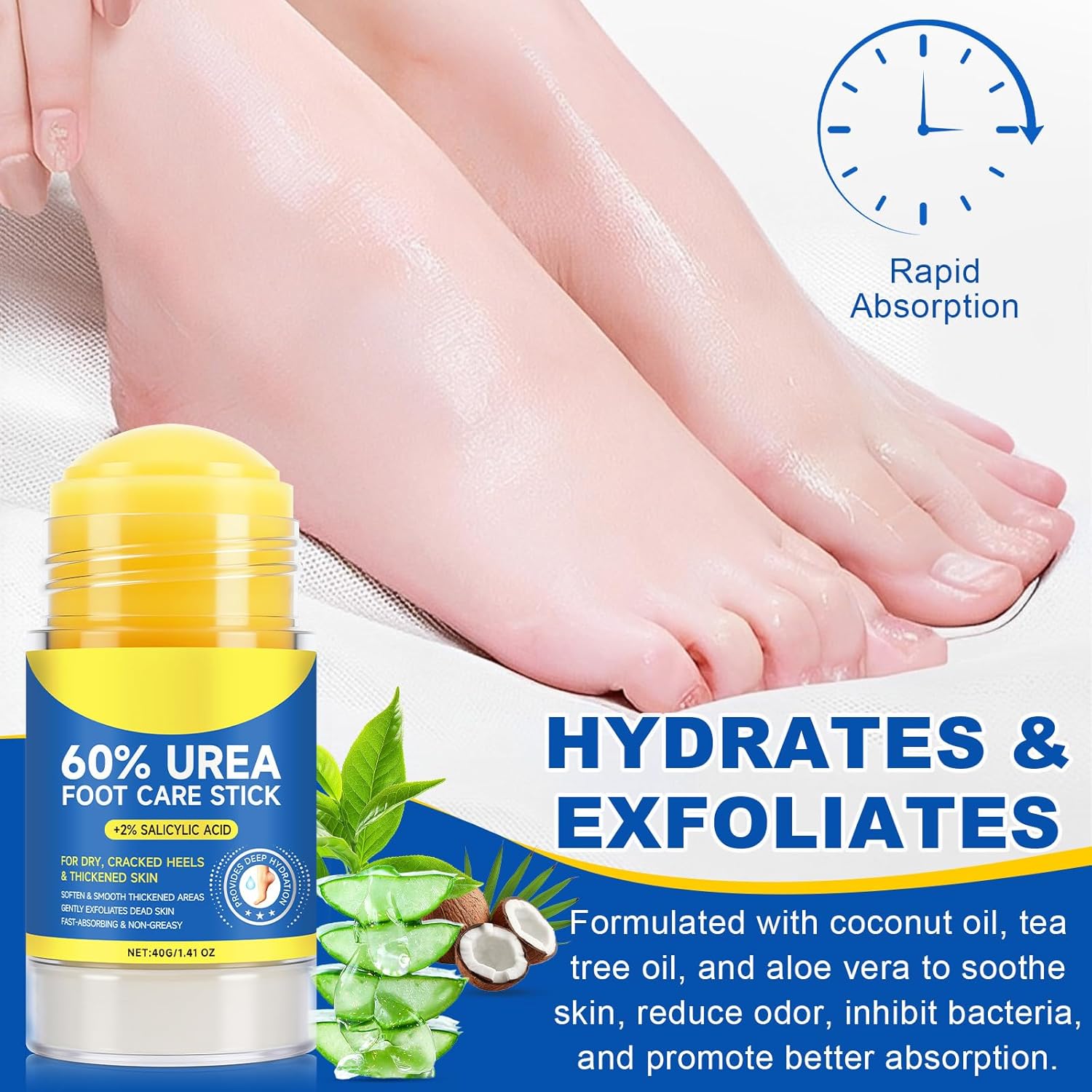 - Moisturizing Foot Cream: This 60% urea foot cream balm + 2% salicylic acid can exfoliates dead skin cells gently and promotes skin renewal. This cracked heel stick deeply soften hardened skin and rapidly moisturizer dryness and calluses