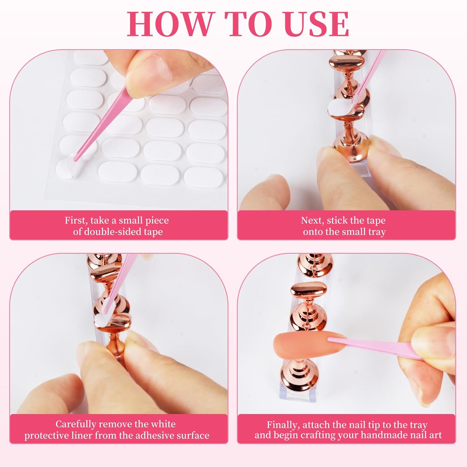 - Effortlessly Create Nail Designs: Each set of nail art tools includes 2 pieces of nail stands, which can simultaneously display or design 10 nail stickers. Each rack is firmly attached to the base via magnetic fixation, preventing displacement and ensuring easy operation. Additionally, each set is equipped with transparent jelly glue, specifically designed for fixing nail art stands or attaching fake nail art.