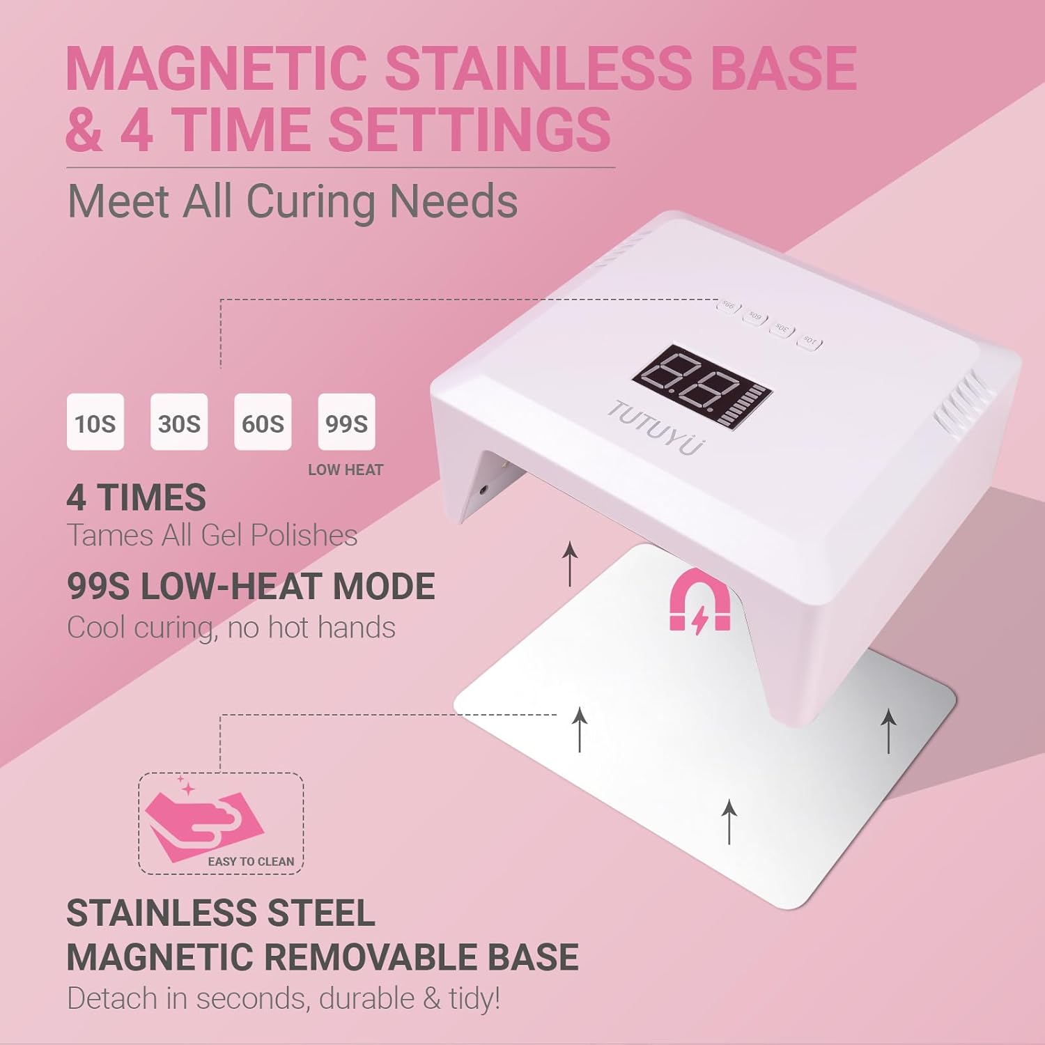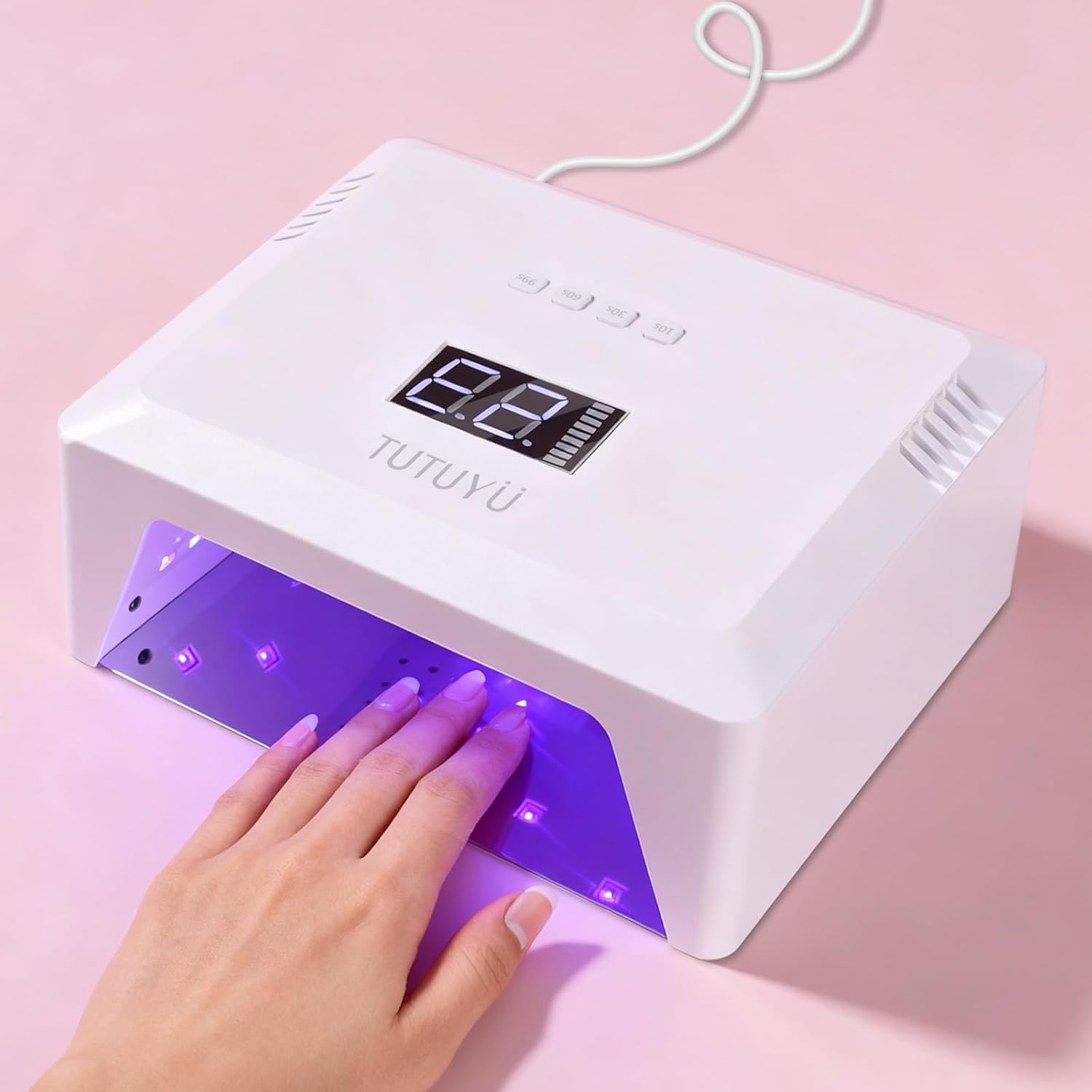 - Precision 4-Stage Timer Control – Customize curing times (10s/30s/60s/99s) for base coats, color layers, thick designs, or 3D charms, eliminating under-curing or over-drying issues.