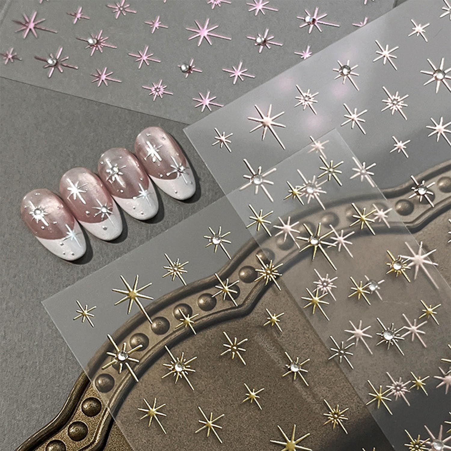 - Self-Adhesive Design: 3D self-adhesive shiny metal star nail decals for nail art design is simple and quick to use, cute nail stickers work great on bare nails, they will stay on for a long time and will not peel off your nails, enjoy the feeling of nail art.