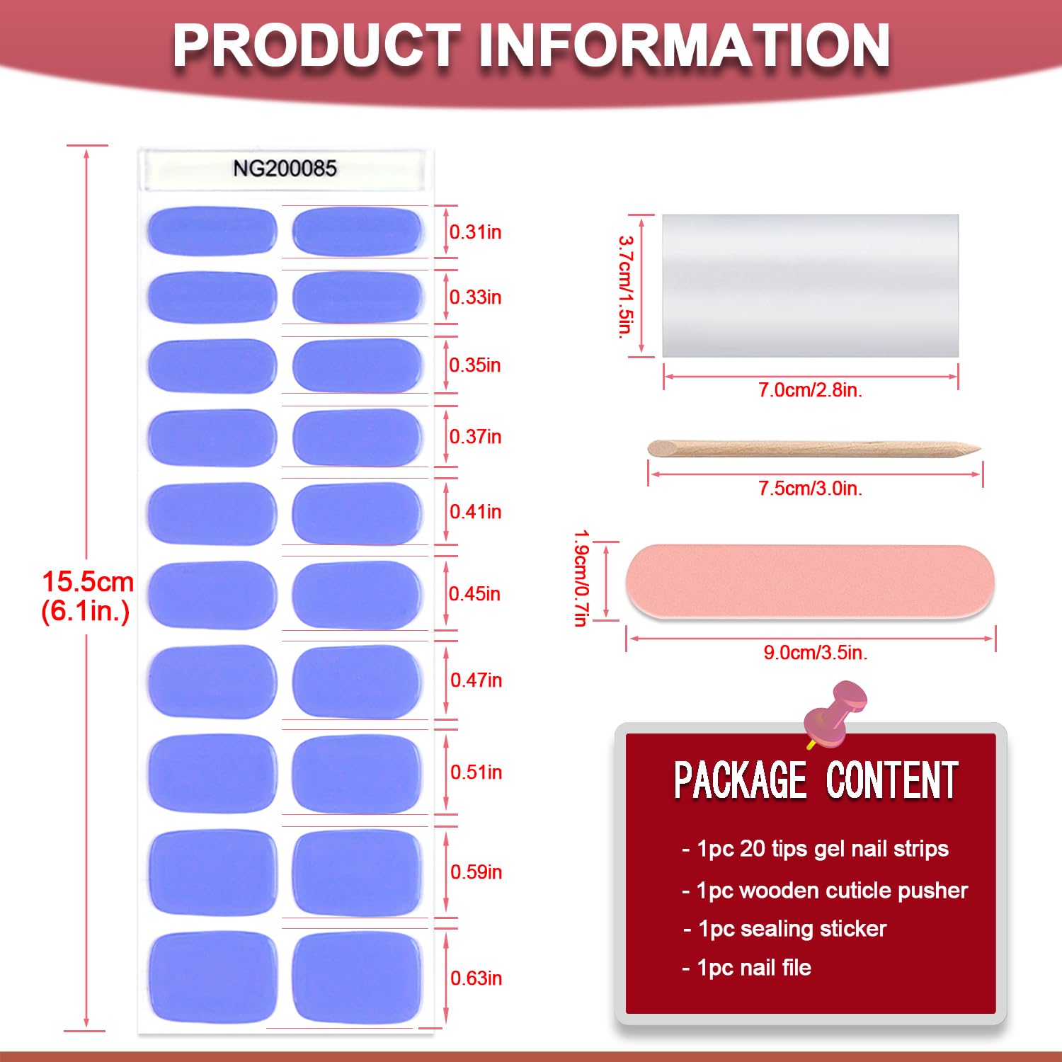 - [ 20 GORGEOUSLY THICK NAIL POLISH STRIPS ] - Package Content 20 Tips skyblue Semi cured nail polish stickers with 10 different sizes to ensure that fit for the most of nails, if you are good at use sissors, you can also cut the tips too big to be the size fitted, or share this good products with family or friends.