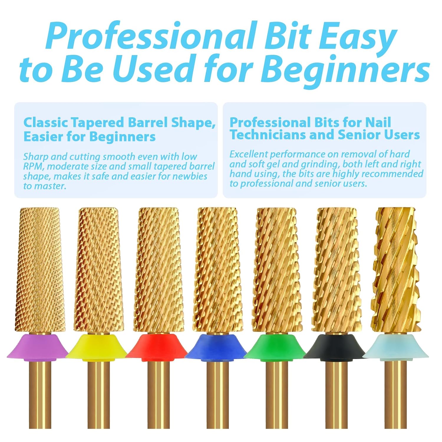 - Professional Bits Fit with Most Nail Drill: 3/32" Shank Tungsten Carbide Bit is suitable for most drill machines. Small tapered shape are more suitable for polishing thick or thin gel, whatever hard or soft gel on the short fake nails or natural nails.